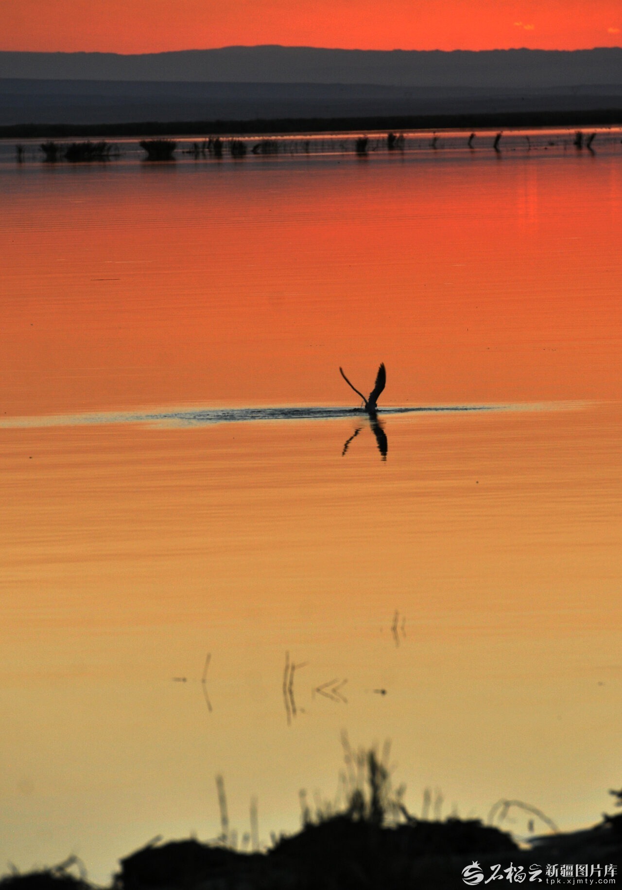 当夕阳西沉,余晖为赤红的雅丹山体镀上金边,其倒影映在湖水中,晕开层层五彩斑斓的波光。山的静谧与湖的灵动在此交融,渔舟唱晚的悠扬、云影与霞光的交织、落日下群鸟的翩跹,为这片水与雅丹的秘境,添上了一抹神秘而动人的秋日色彩。