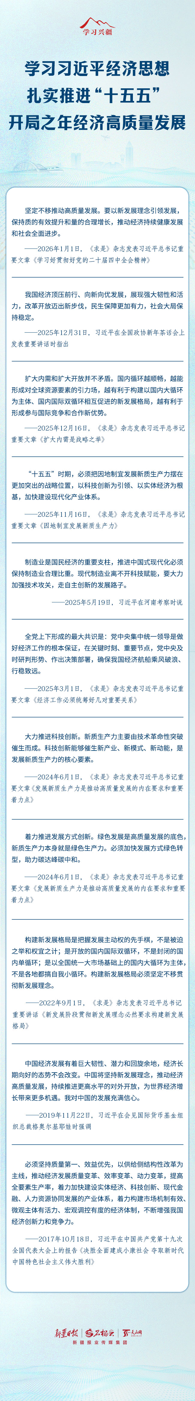 学习兴疆丨学习习近平经济思想,扎实推进“十五五”开局之年经济高质量发展