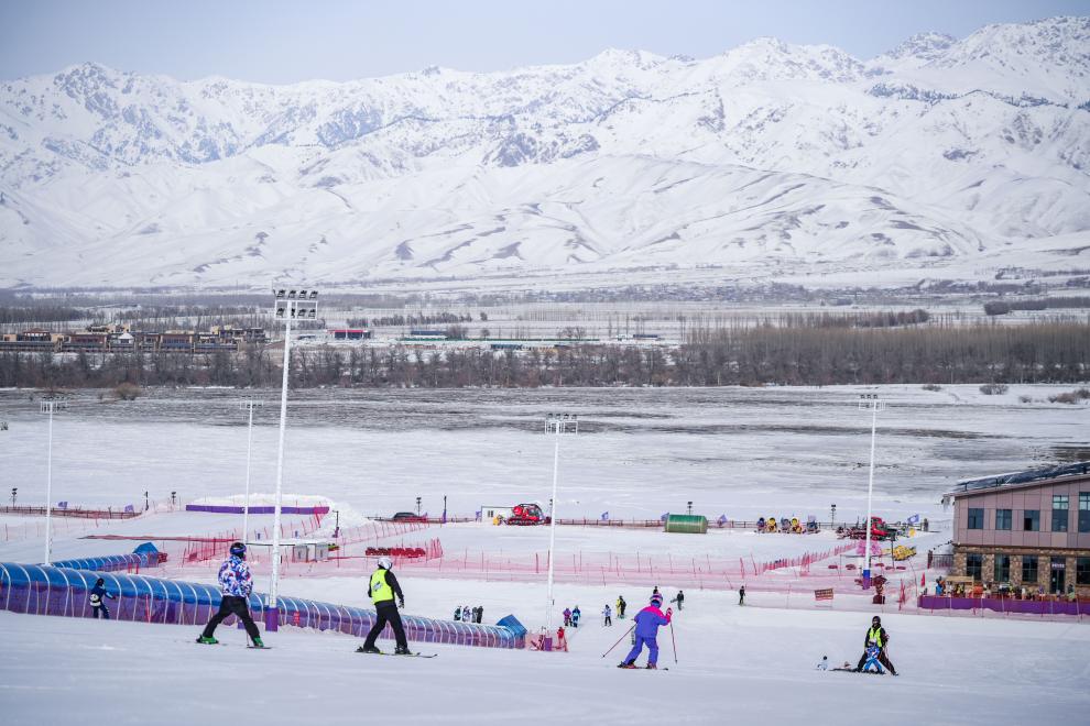 1月25日,雪友在新疆那拉提哈茵赛滑雪度假区滑雪。新华社记者 徐宏岩 摄