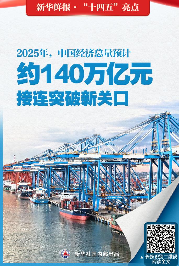 经济总量预计约140万亿元、研发人员总量全球第一、优良天数占比达87.2%……这些硬核数据够亮眼!新华社“新华鲜报”栏目11篇报道,带你速览“十四五”期间中国奋进足迹,感受我国发展取得的重大成就,体味极不寻常、极不平凡的发展历程。
