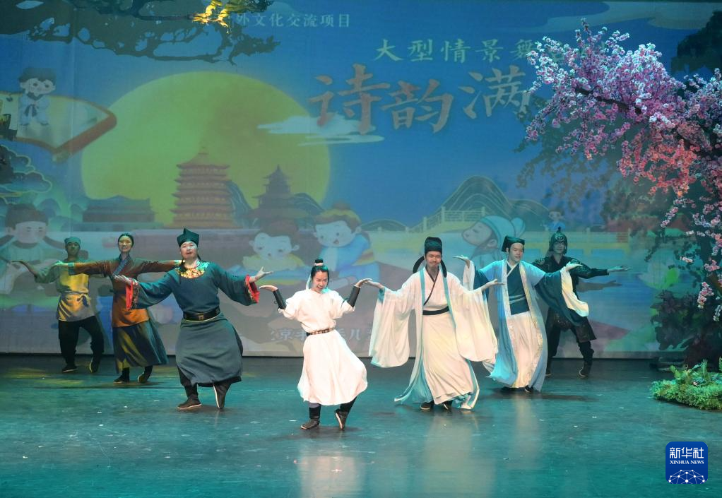 5月16日,舞台剧《诗韵满长安》海外巡演版在京首演,这是演出现场。新华社记者 李贺 摄