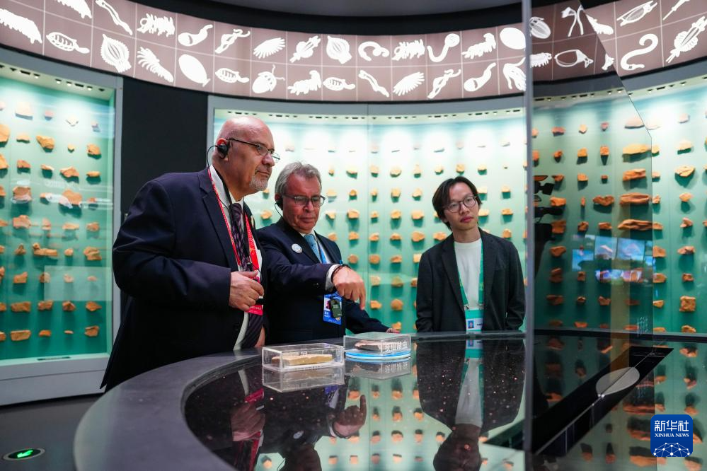 9月7日,与会嘉宾在论坛后参观澄江化石地世界自然遗产博物馆。新华社记者 陈欣波 摄