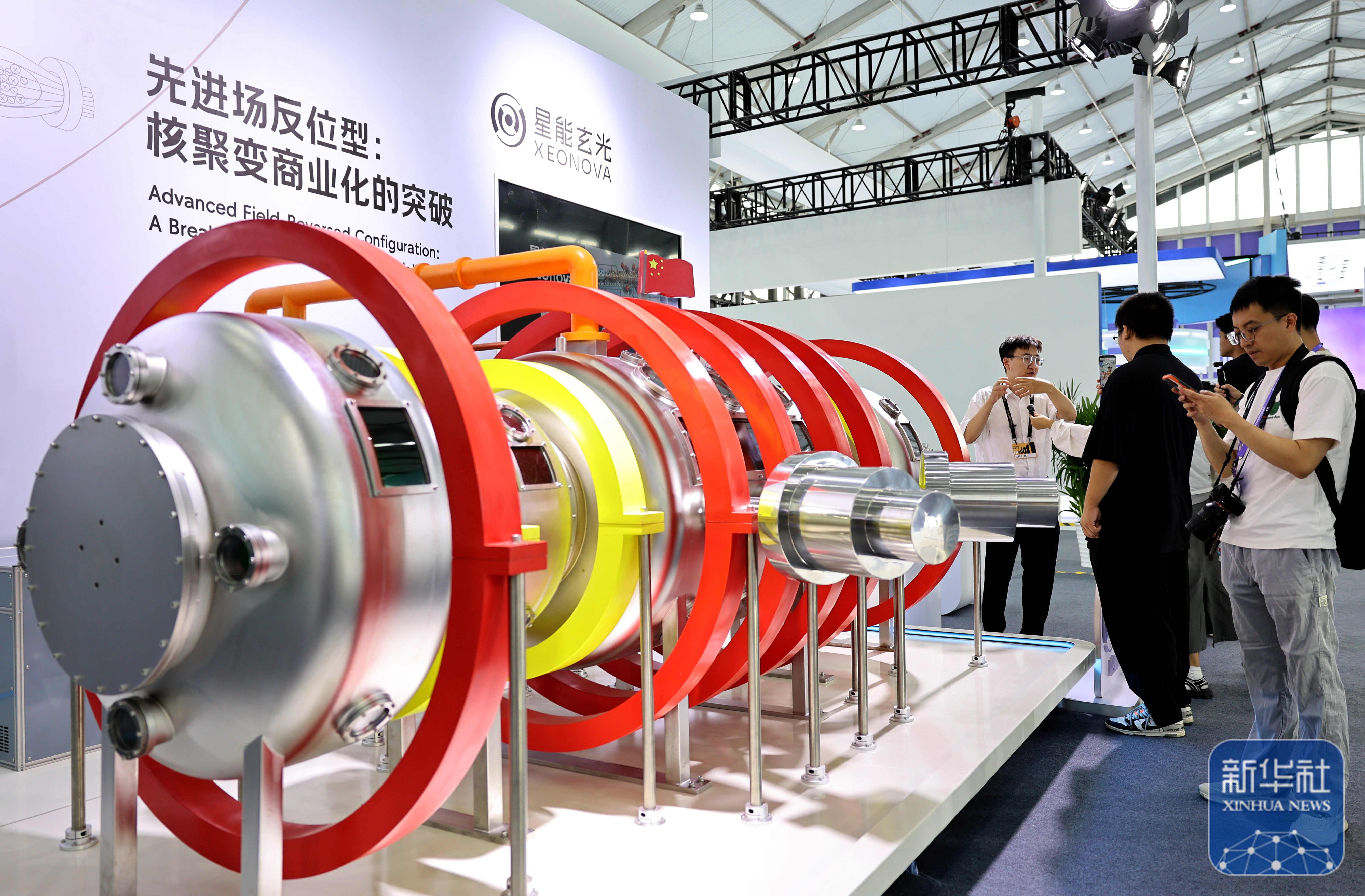 ↑9月10日,参观者在一个先进场反位型装置模型前驻足观看。