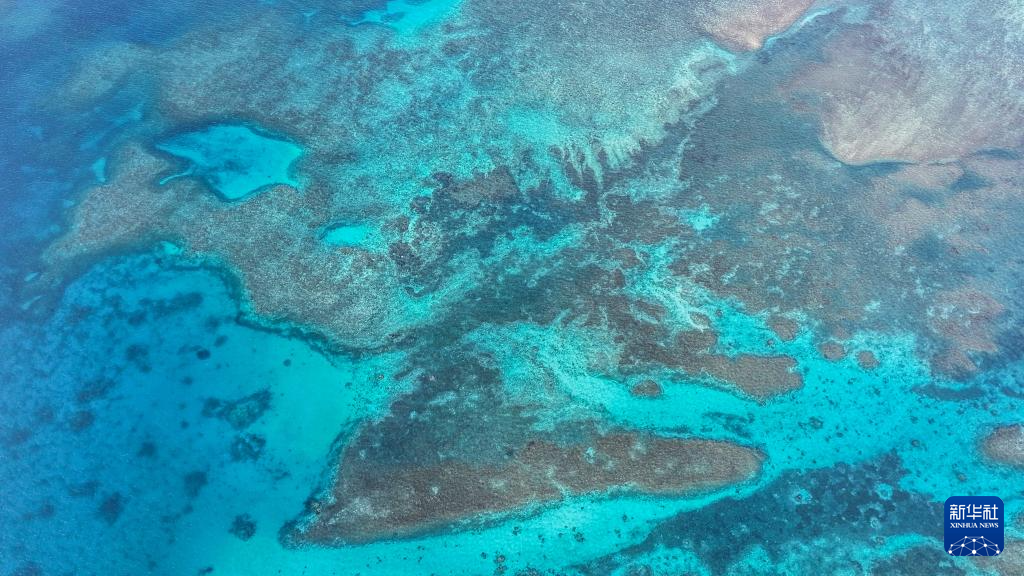 这是2025年3月26日拍摄的黄岩岛浅水区的一片礁盘(无人机照片)。新华社记者 郎兵兵 摄