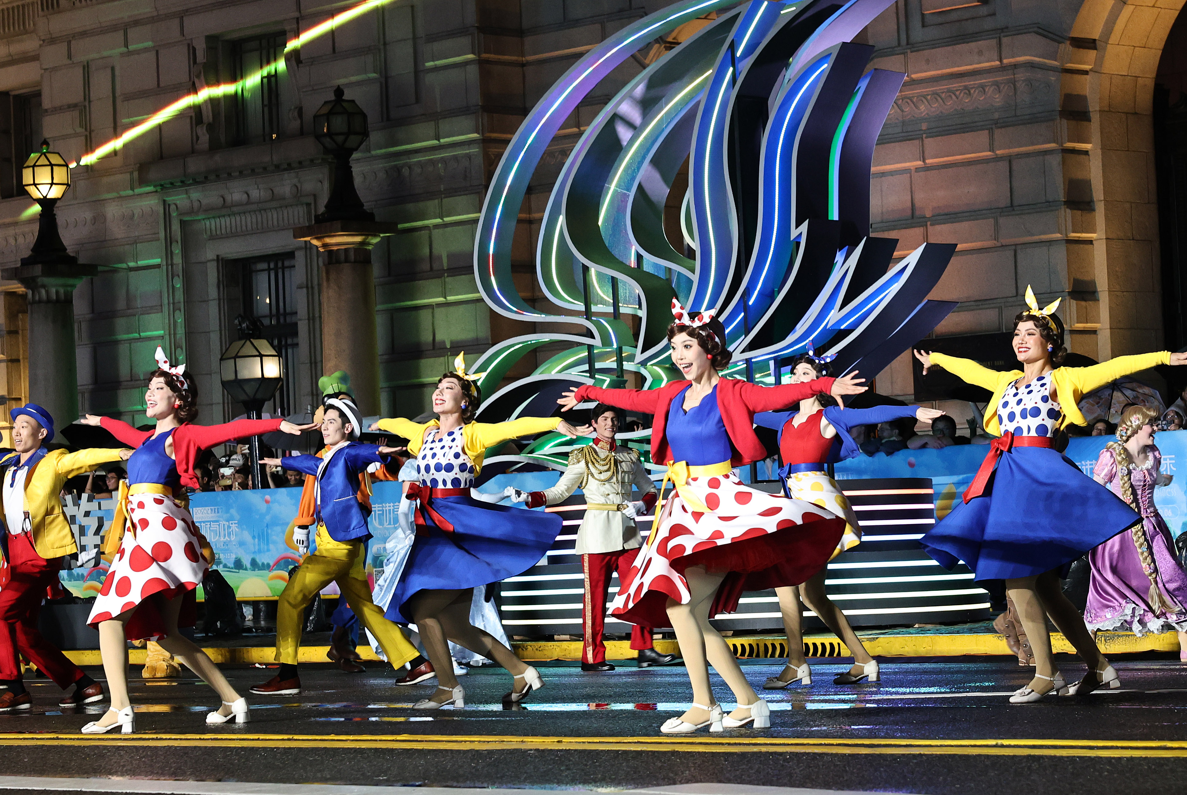 9月13日,上海迪士尼度假区表演团在旅游节花车巡游活动上表演。