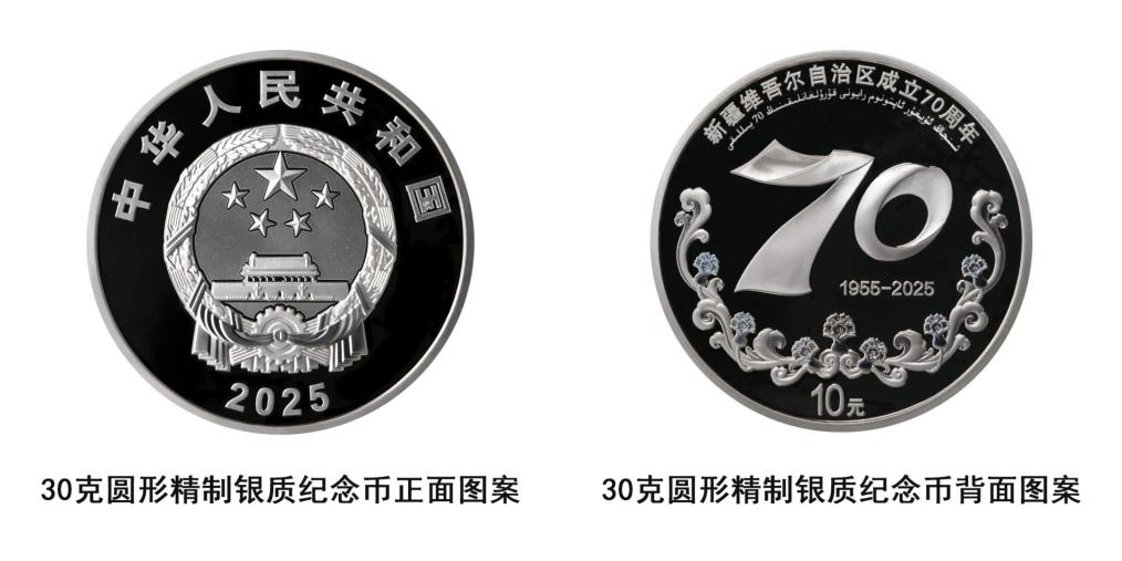 中国人民银行将发行新疆维吾尔自治区成立70周年金银纪念币