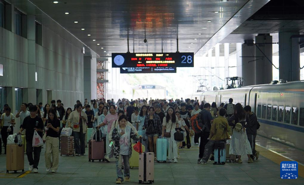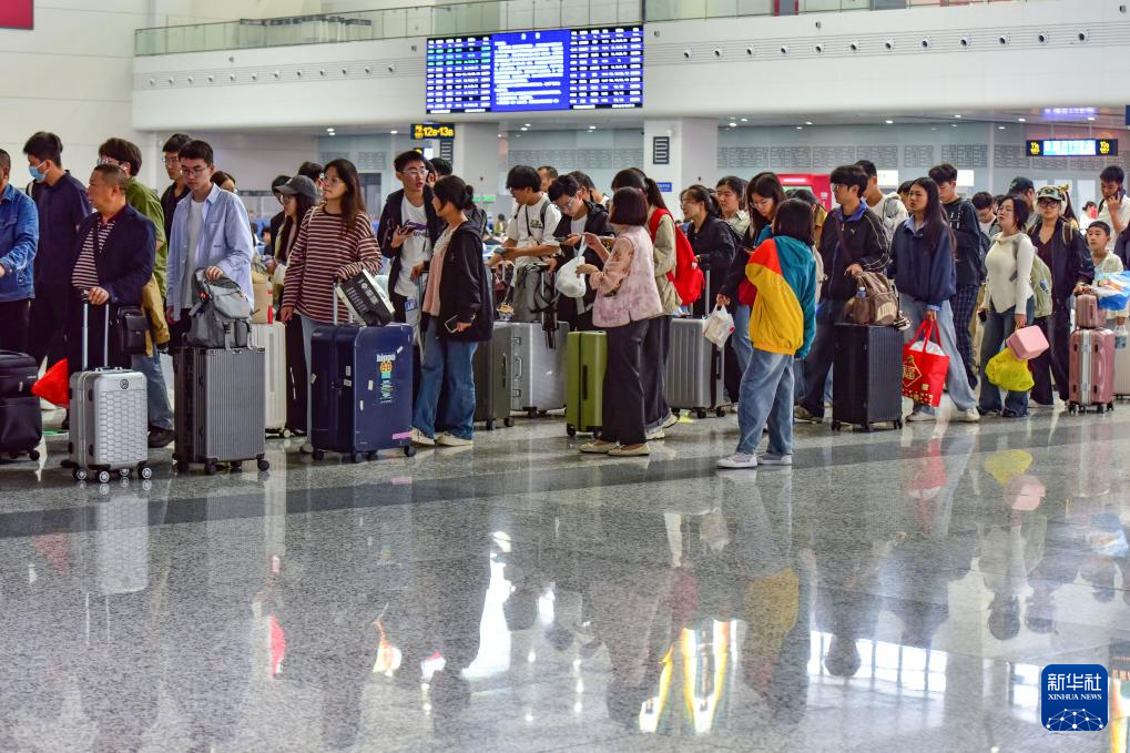 10月8日,旅客在贵阳北站有序出站。新华社发(张维摄)