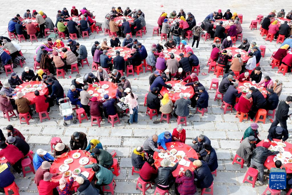 10月29日,在江苏省徐州市铜山区柳泉镇北村村,老人们围坐圆桌,共享湖鲜宴席,共度重阳佳节。 新华社发(白雪摄)
