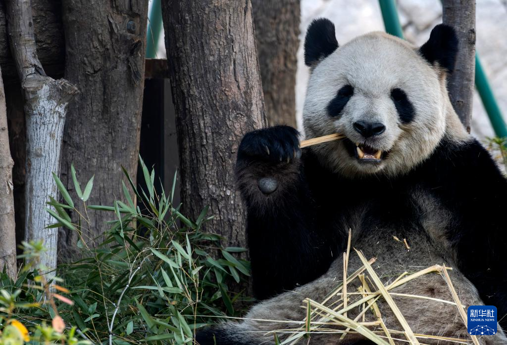 1月17日,大熊猫“艾伦”在吃竹子。新华社记者 魏培全 摄
