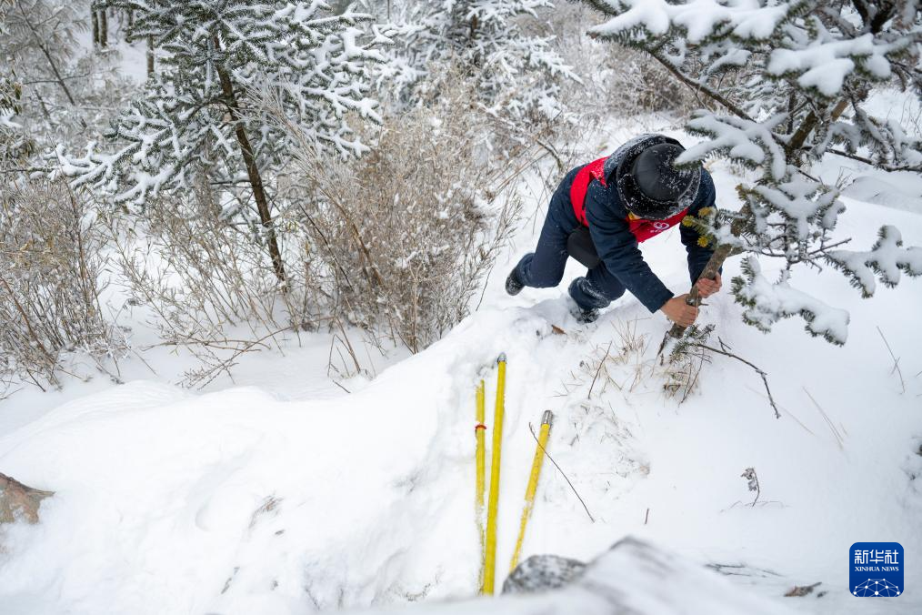 1月21日,在神农架林区木鱼镇,木鱼供电所运维人员在极端天气线路特巡特护途中。新华社记者 杜子璇 摄
