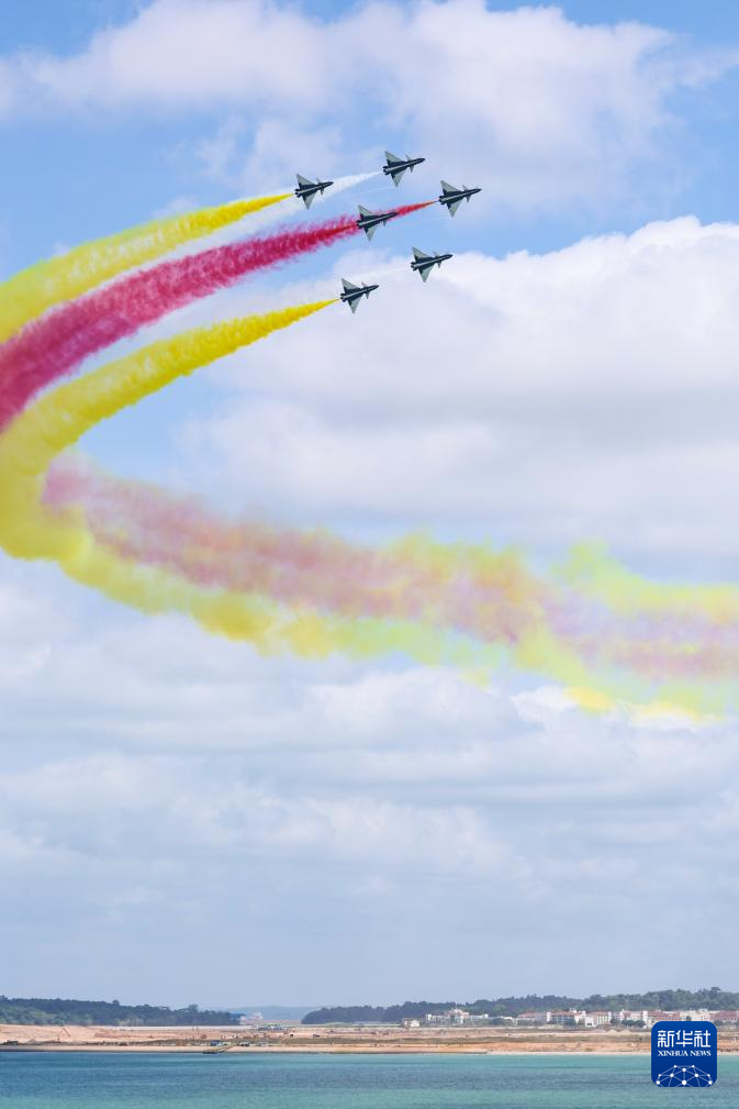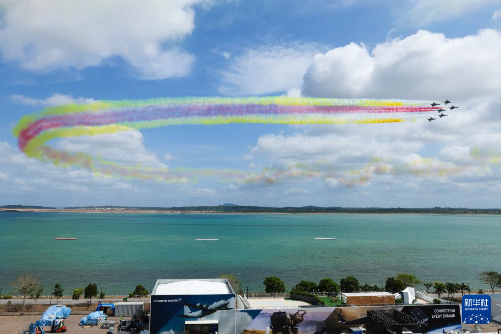 1月30日上午,中国空军八一飞行表演队在新加坡樟宜机场海面上空展开空中特技动作飞行。新华社发(朱姜海摄)