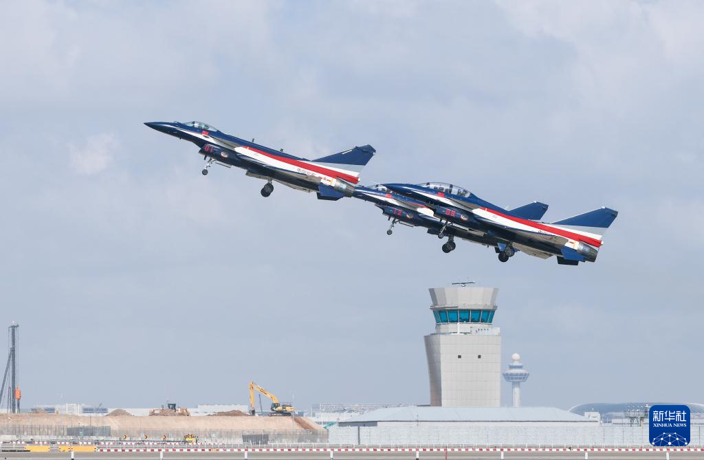 2月1日,在新加坡樟宜展览中心举行的新加坡航展媒体预演上,中国空军八一飞行表演队进行检验性飞行。新华社发(朱姜海摄)