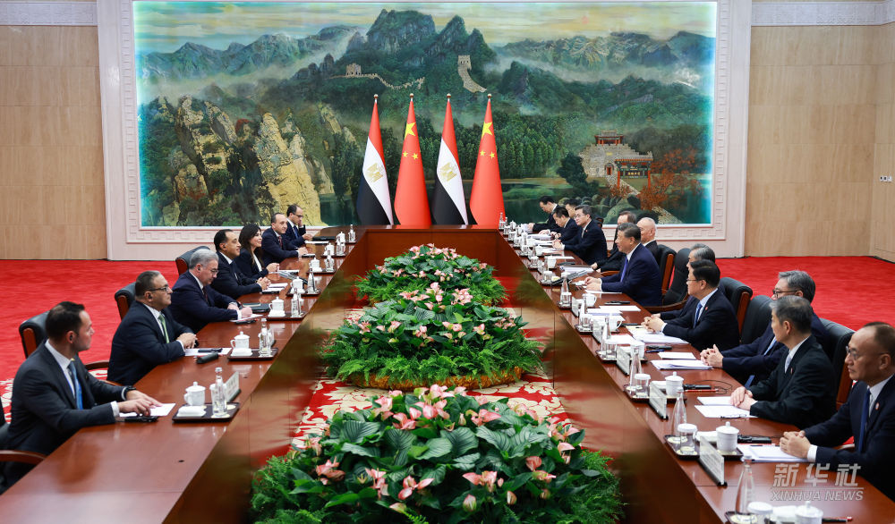 8月30日下午,国家主席习近平在天津迎宾馆会见来华出席2025年上海合作组织峰会的埃及总理马德布利。