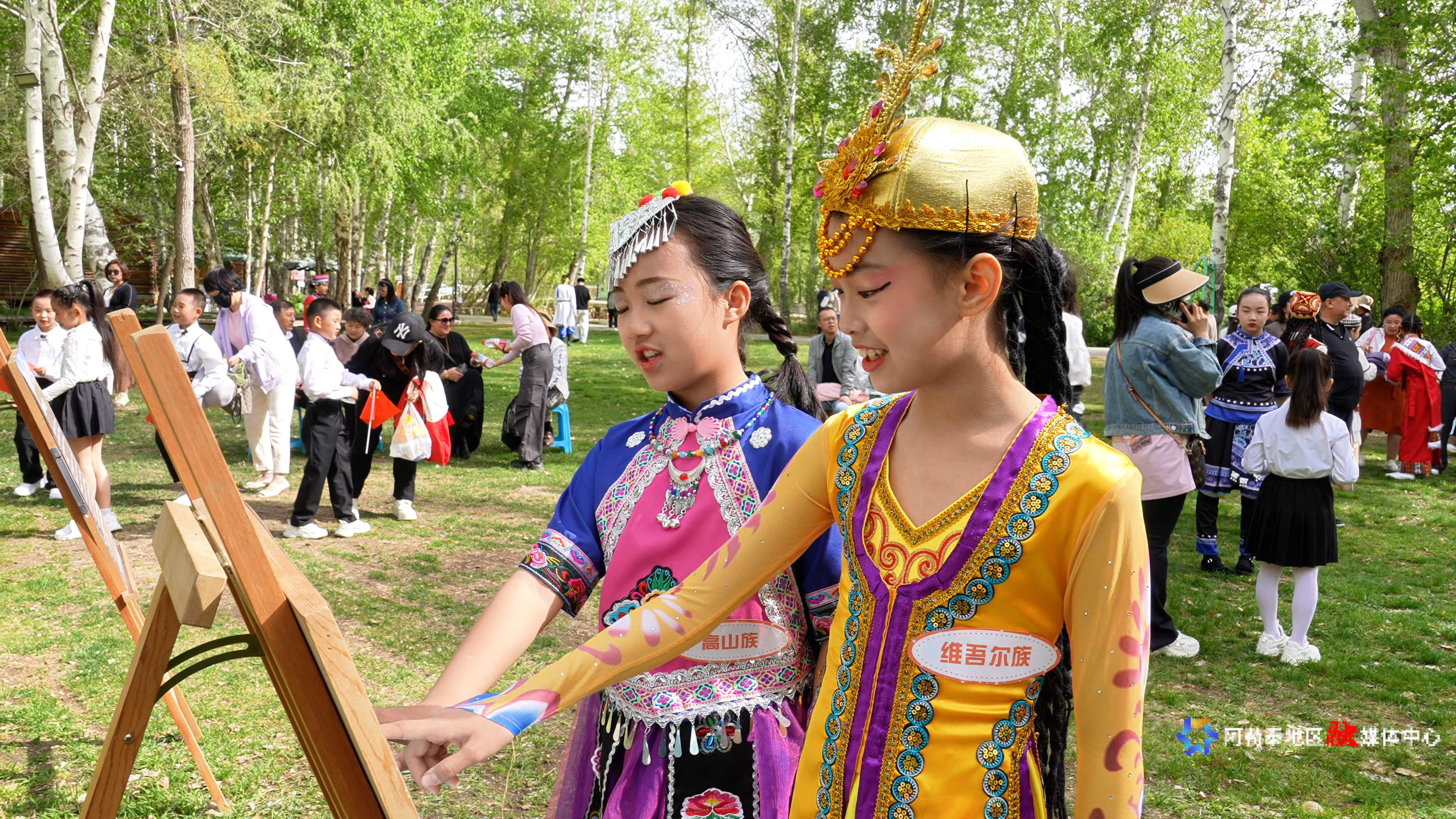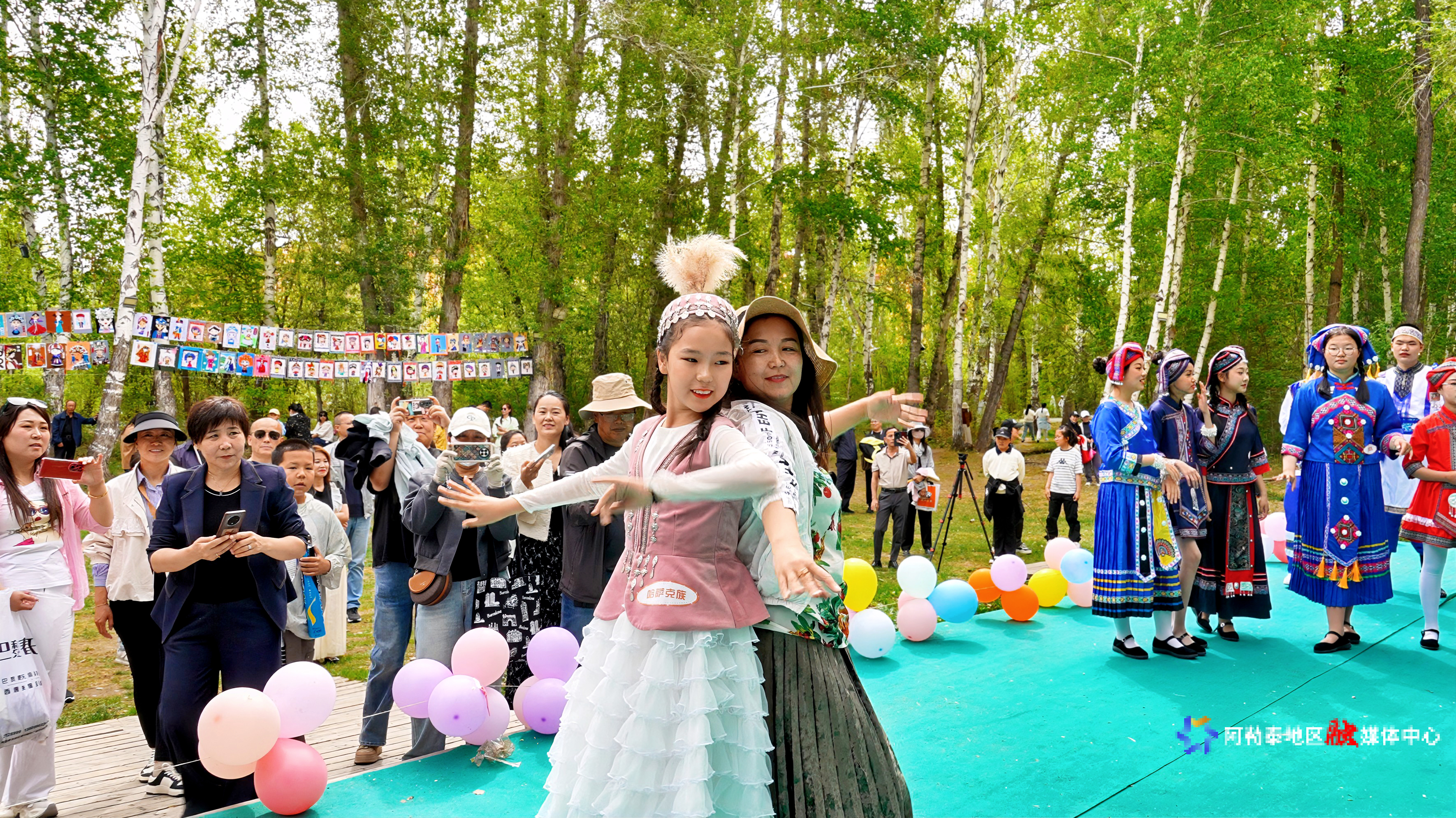 随后,20名身着各民族服饰的少先队员在克兰河畔朗诵《阿勒泰的星光》。清脆童声与克兰河潺潺流水声交织在一起,描绘出阿勒泰大地各民族团结一心、共同发展的美好画卷。