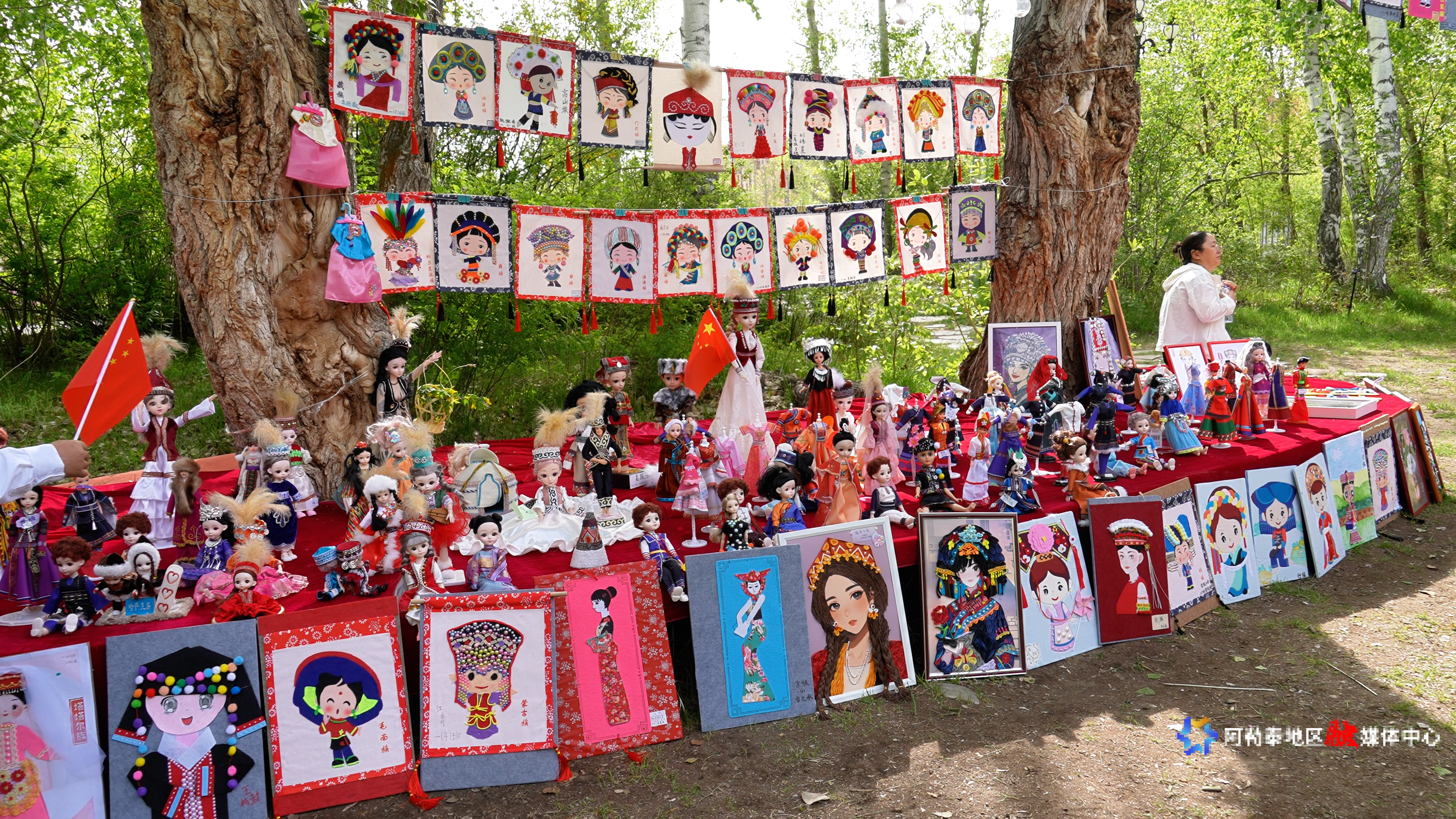 沿着克兰河畔步道,56个民族文化展位依次排开,展示着精美的布艺粘画和手工服饰等手工艺品。展品吸引了众多师生和家长驻足欣赏,大家在了解民族文化的同时,也对各民族的智慧与创造力赞叹不已。现场还设置了互动体验环节,让参与者亲身感受民族文化的魅力,促进了民族文化在代际之间的传承与交流。