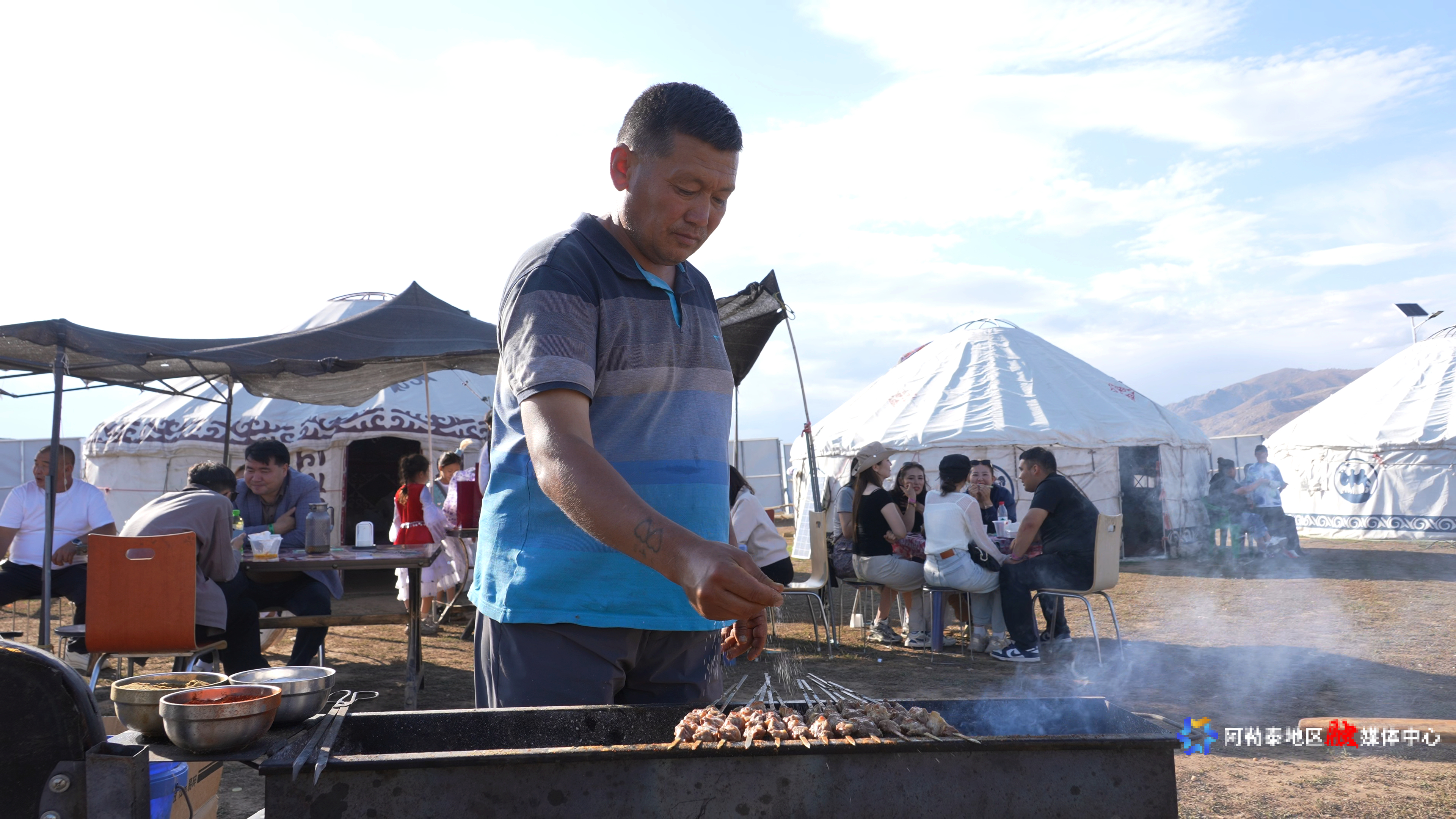 游客们品尝着烤羊肉、手抓饭等地道美食,感受着当地的饮食文化