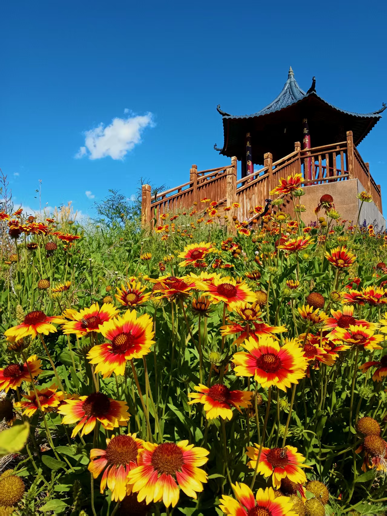 8月28日,笔者在吉木乃县体育公园看到,五彩缤纷的鲜花遍地盛放,形成一道绚丽风景。花丛间,蜜蜂忙碌采集花蜜,蝴蝶翩翩起舞,与园中盛开的缤纷花朵相映成趣,让游客们获得视觉享受。