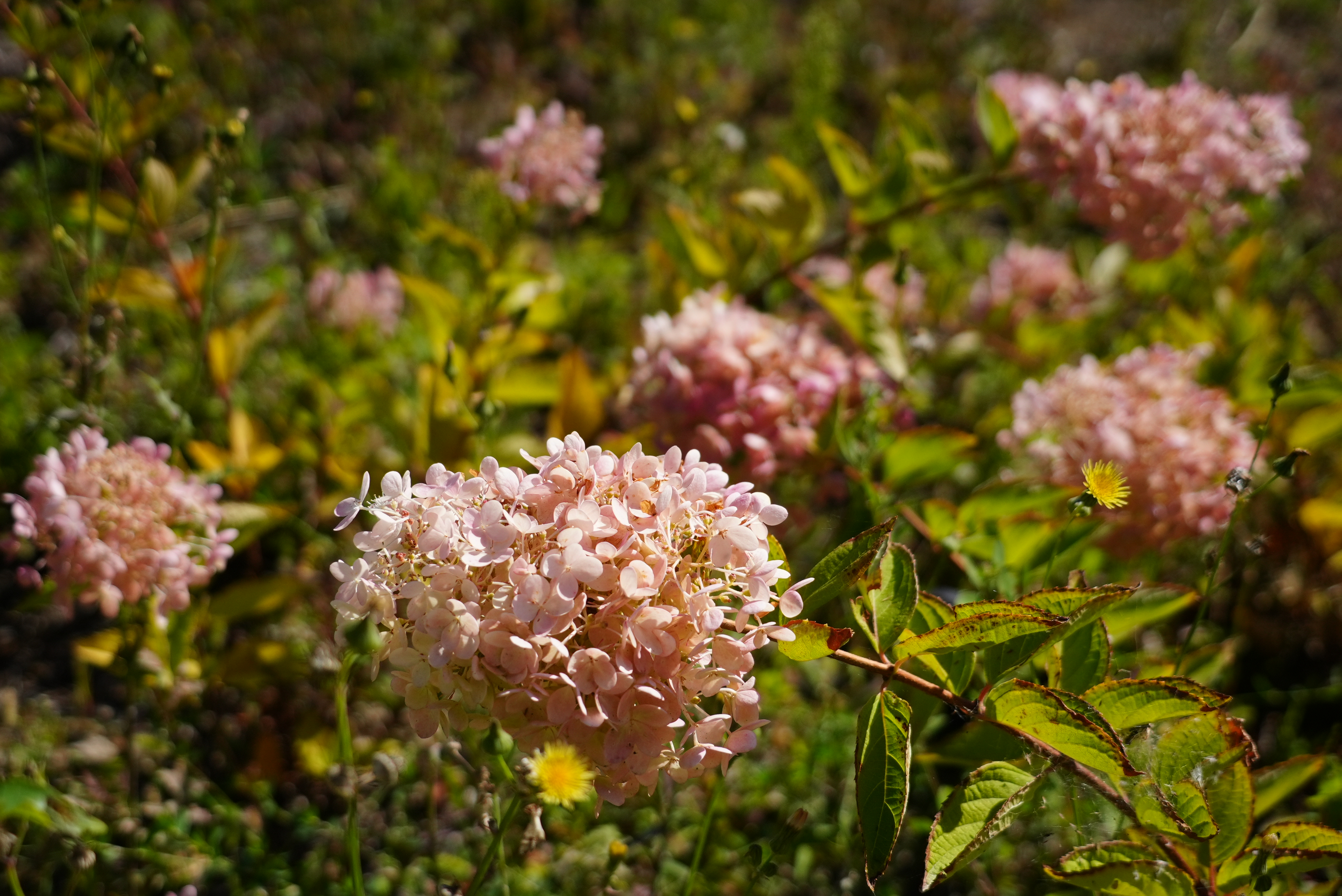 漫步花丛,四瓣萼片组成的圆锥形花序层层叠叠,在阳光下泛着丝绒光泽,与远处天鹅湖的粼粼波光相映成趣,构成一幅动静相宜的秋日画卷。