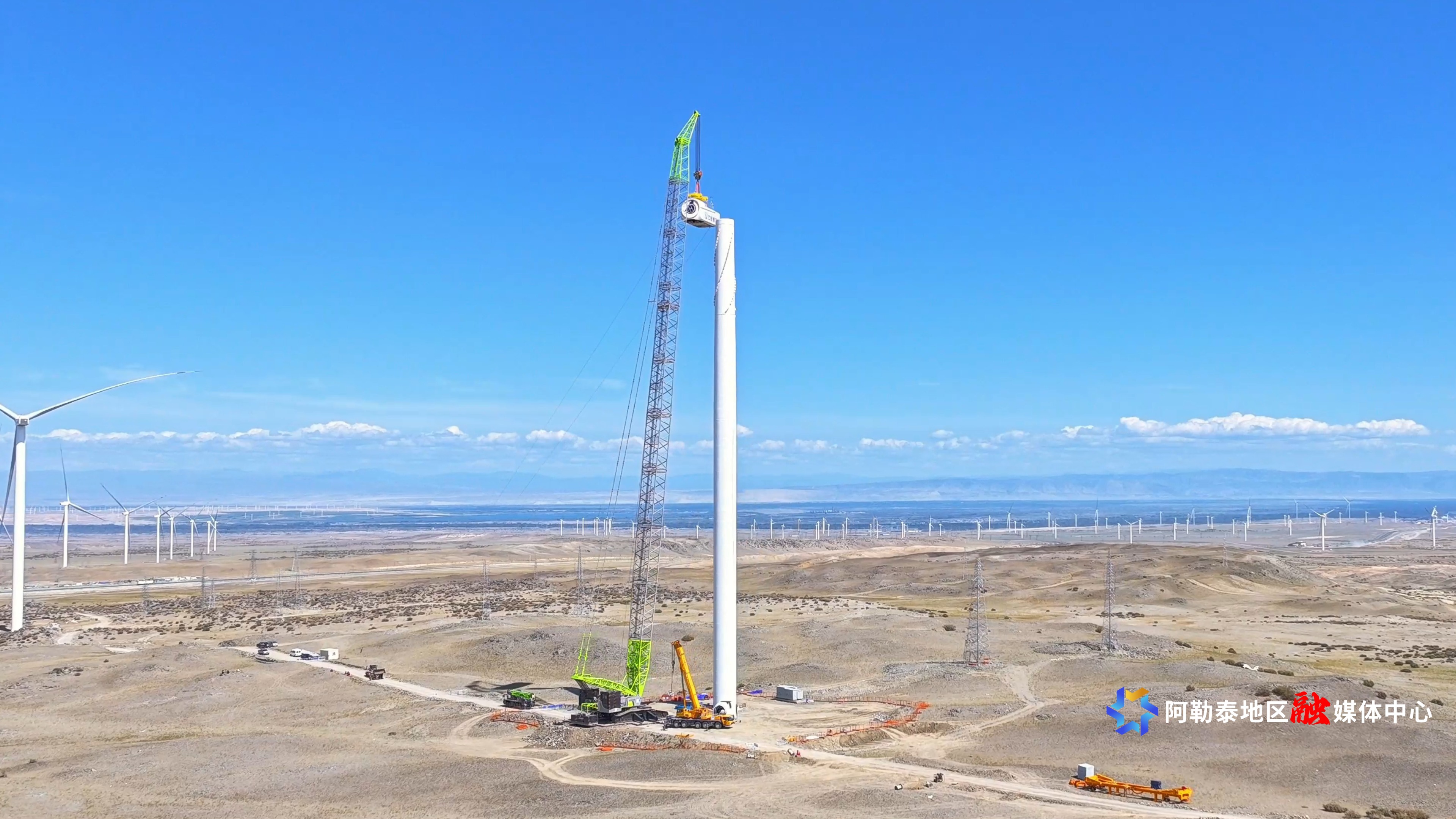 入秋以来,东方电气布尔津100万千瓦风电项目风机吊装作业有序推进。