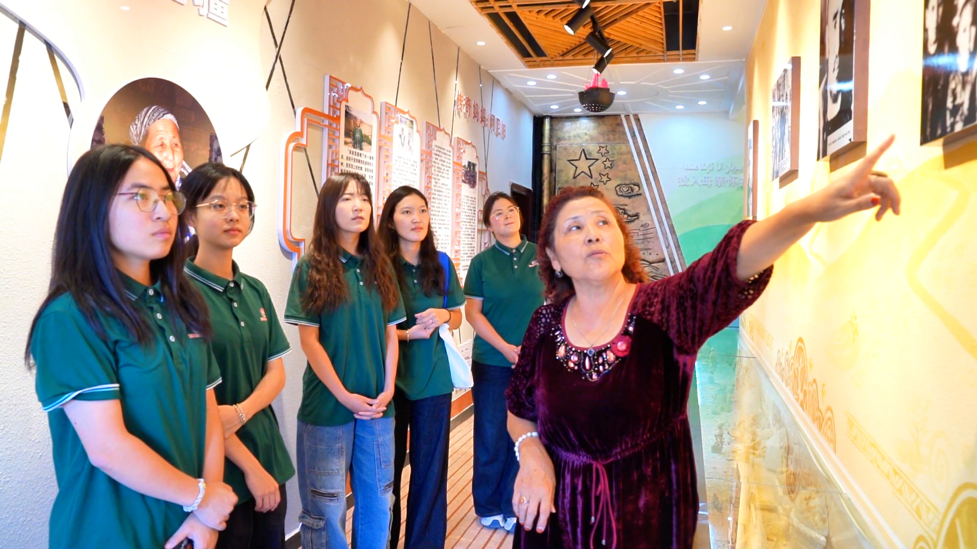 前段时间,浙江理工大学在青河县参加社会实践的5名学生,来到阿尼帕事迹教育展馆进行参观学习。2025年6月,青河县将阿尼帕家庭故事纳入铸牢中华民族共同体意识重点课程,这也吸引着学生和各界人士走进这里,感受温暖的人间大爱。在参观完展览后,5名学生来到阿尼帕·阿力马洪家,看望这位德高望重的老奶奶。
