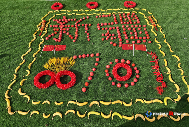 “用家乡种出的瓜果蔬菜拼出‘中国’两个字时,我心里特别激动!”阿勒泰市第二中学学生阿克纳尔·买热克捧着自己参与创作的作品说。
