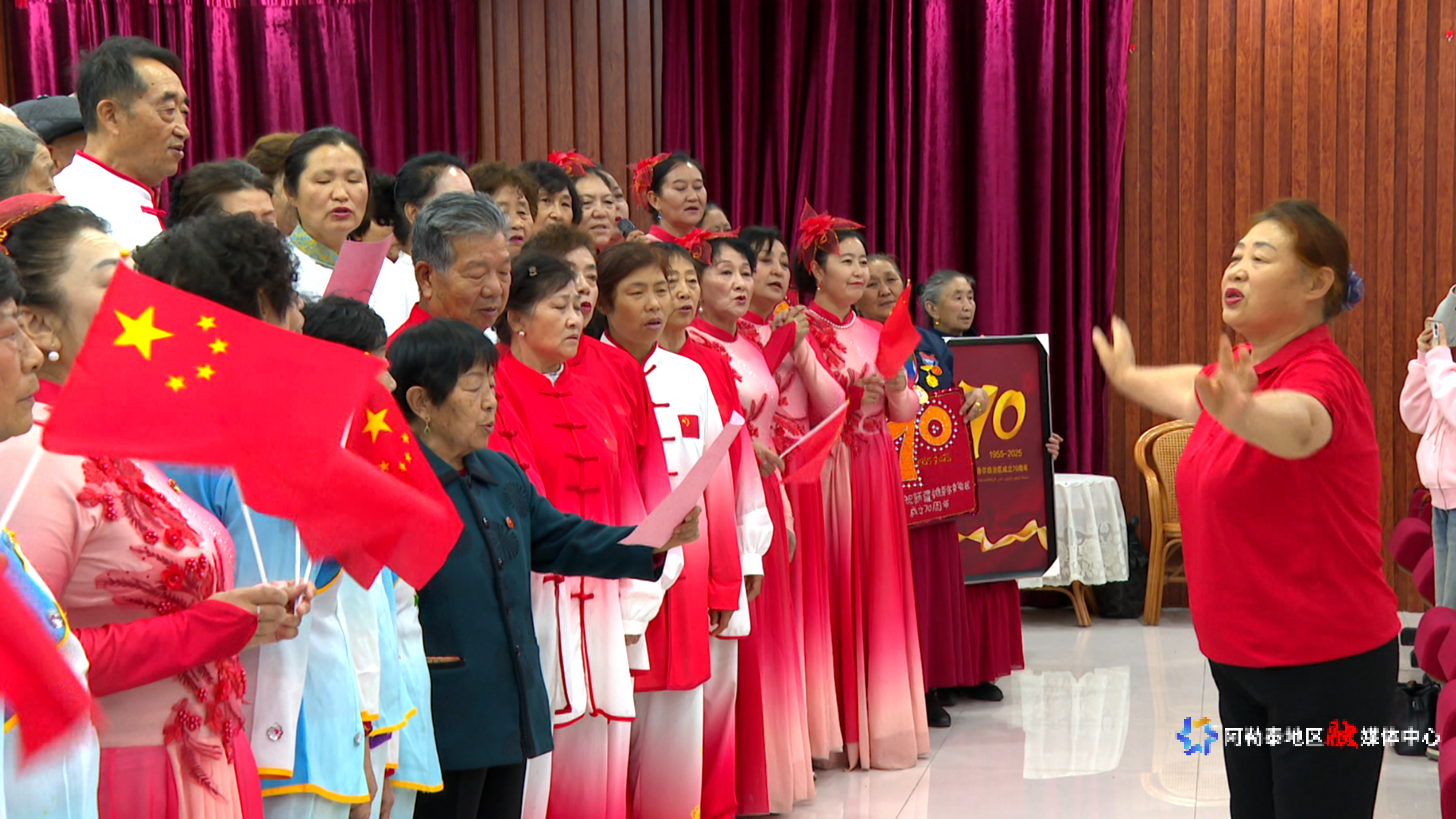 活动尾声,社工和志愿者共同带动全场老人、表演团队成员及工作人员走上舞台,大家挥动手中国旗和庆祝新疆维吾尔自治区成立70周年的手工作品,齐声高唱《没有共产党就没有新中国》与《歌唱祖国》。舞动的国旗映照着一张张真挚的脸庞,歌声传递的是一份温暖与坚定前行的力量。