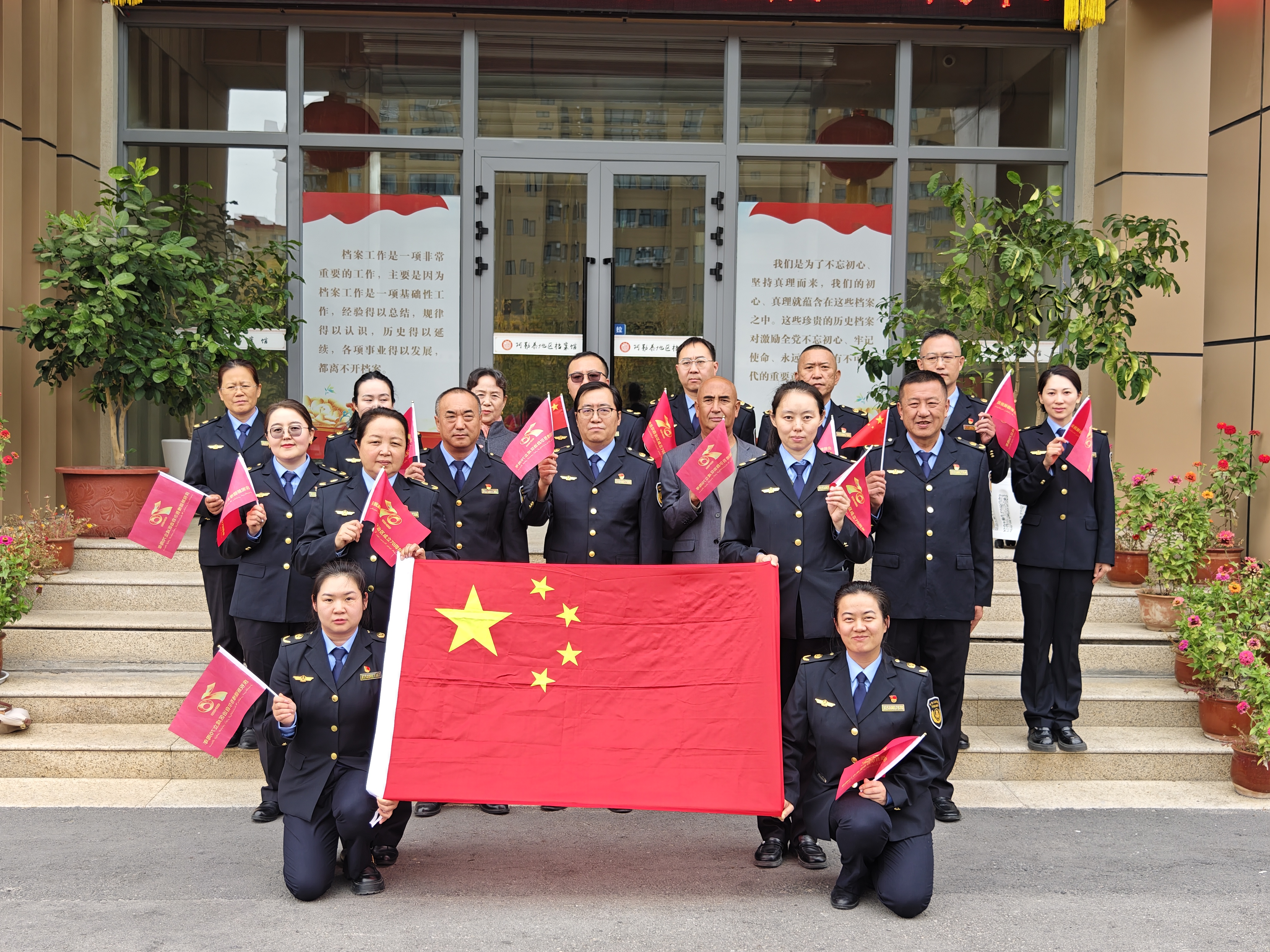 阿勒泰执法支队党员参观中国共产党阿勒泰历史展馆门前合影。
