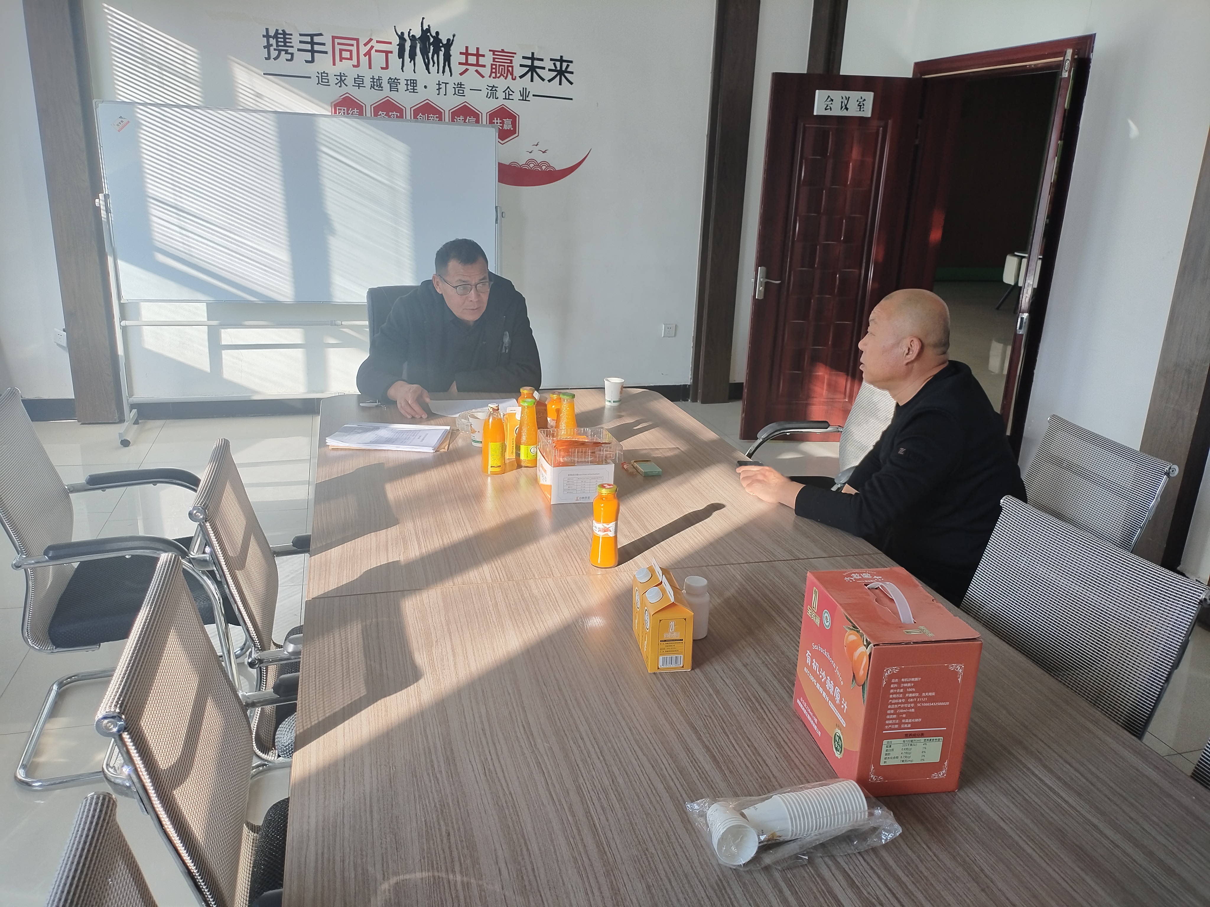 青河县市场监督管理局食品科科长邹训刚到新疆恩利德生物科技有限公司走访。通讯员 汤旸摄