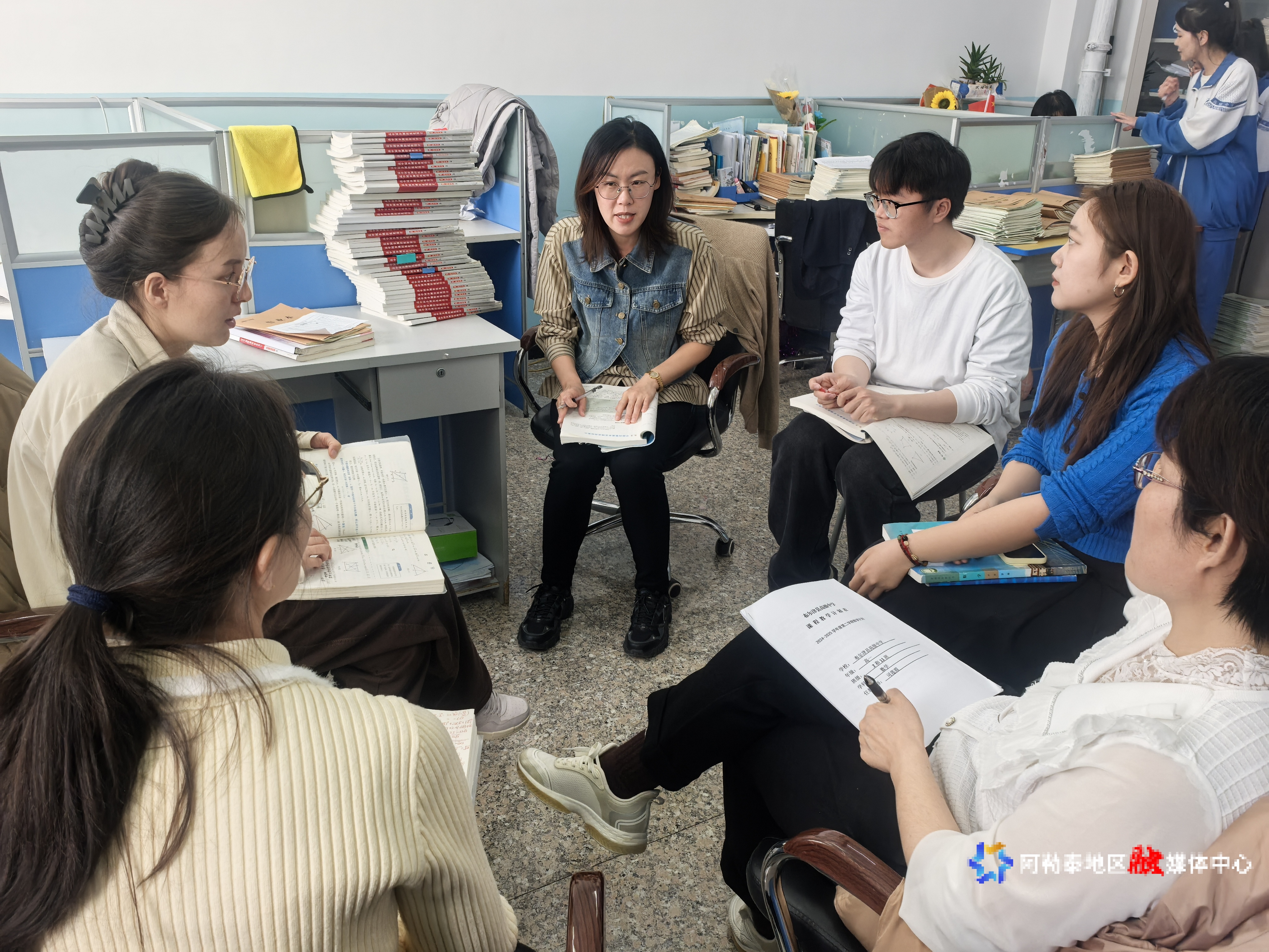 “援疆不是一个人的战斗,要让优质教育的种子在这里生根发芽。”作为备课组组长,史盛楠始终把“传帮带”当作工作重点。每周的集体备课时间,她总会提前梳理教学重点难点,把吉林省的先进教学理念和方法毫无保留地分享给同事们——从如何设计互动课堂,到怎样通过作业批改精准掌握学生学情,再到利用周测数据调整教学策略,她都讲得细致入微。