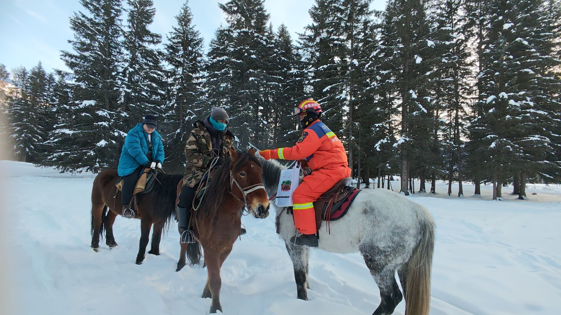 阿勒泰新闻网-阿勒泰地区融媒体中心(记者 古扎丽·阿布都热西提)近日,地区消防救援支队喀纳斯景区消防救援大队创新采用“马背宣传+隐患排查”双线模式,组建马背消防宣传队前往辖区偏远牧区、木结构建筑集中区域及游客活动场所,开展消防安全宣传与专项检查,切实筑牢冬季景区安全防线,有效提升牧民群众与游客的自防自救能力。
