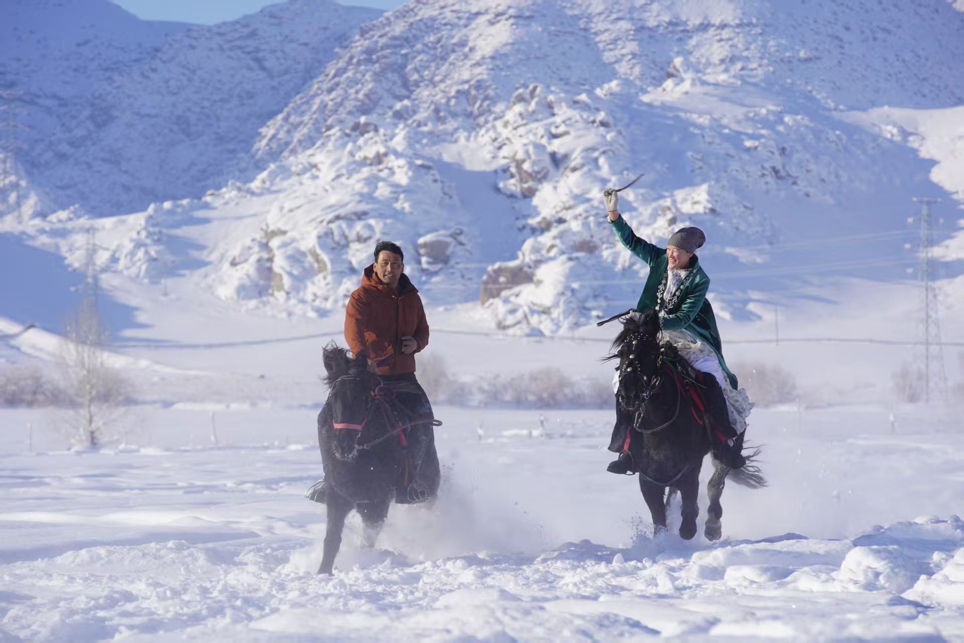 富蕴县铁买克乡举行2025—2026年冰雪旅游文化暨“群众村晚”文体活动骑马比赛现场。通讯员 阿吴英·哈得勒别克摄
