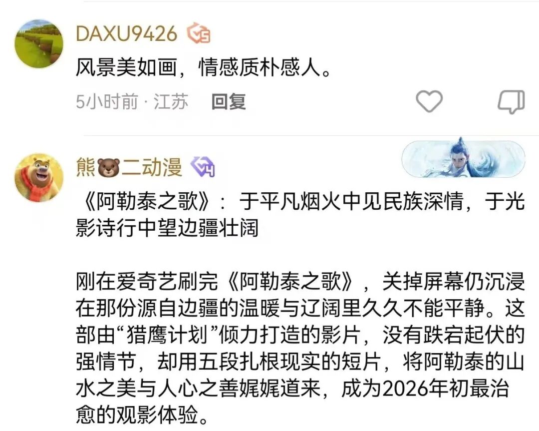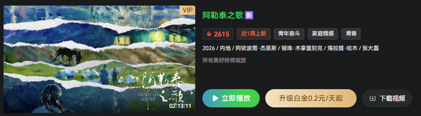 电影《阿勒泰之歌》正在爱奇艺、腾讯视频热映中