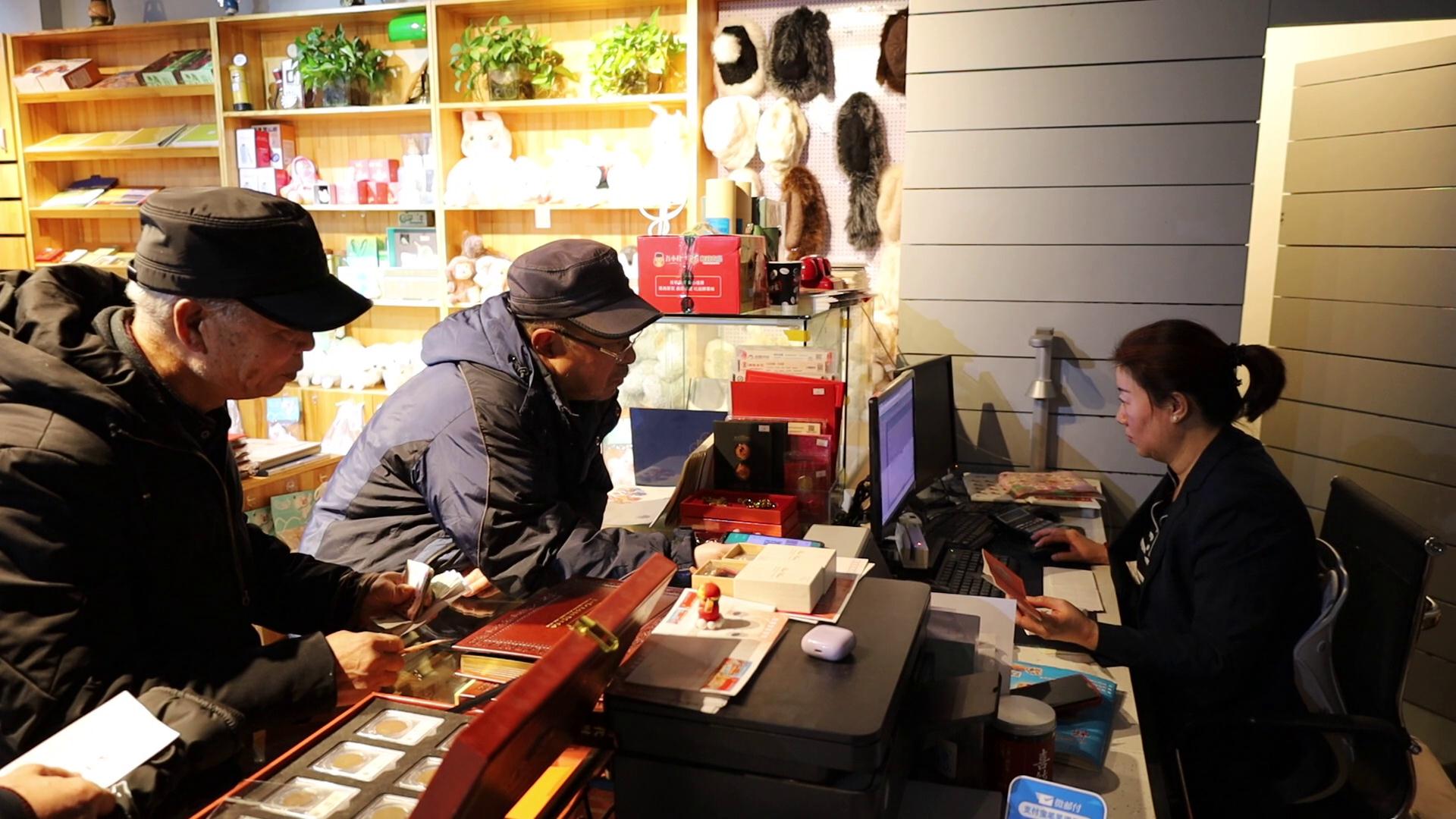 集邮爱好者在阿勒泰市五百里主题邮局购买邮票。