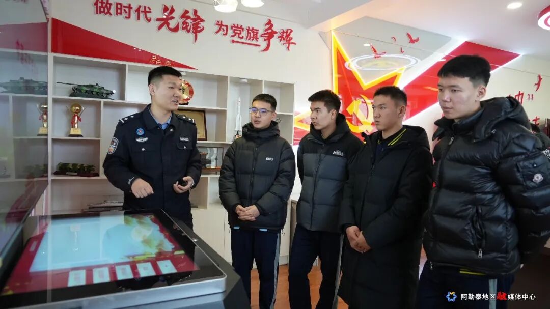 红山嘴边检站民警向阿勒泰地区第二高级中学学生在党建馆讲解。