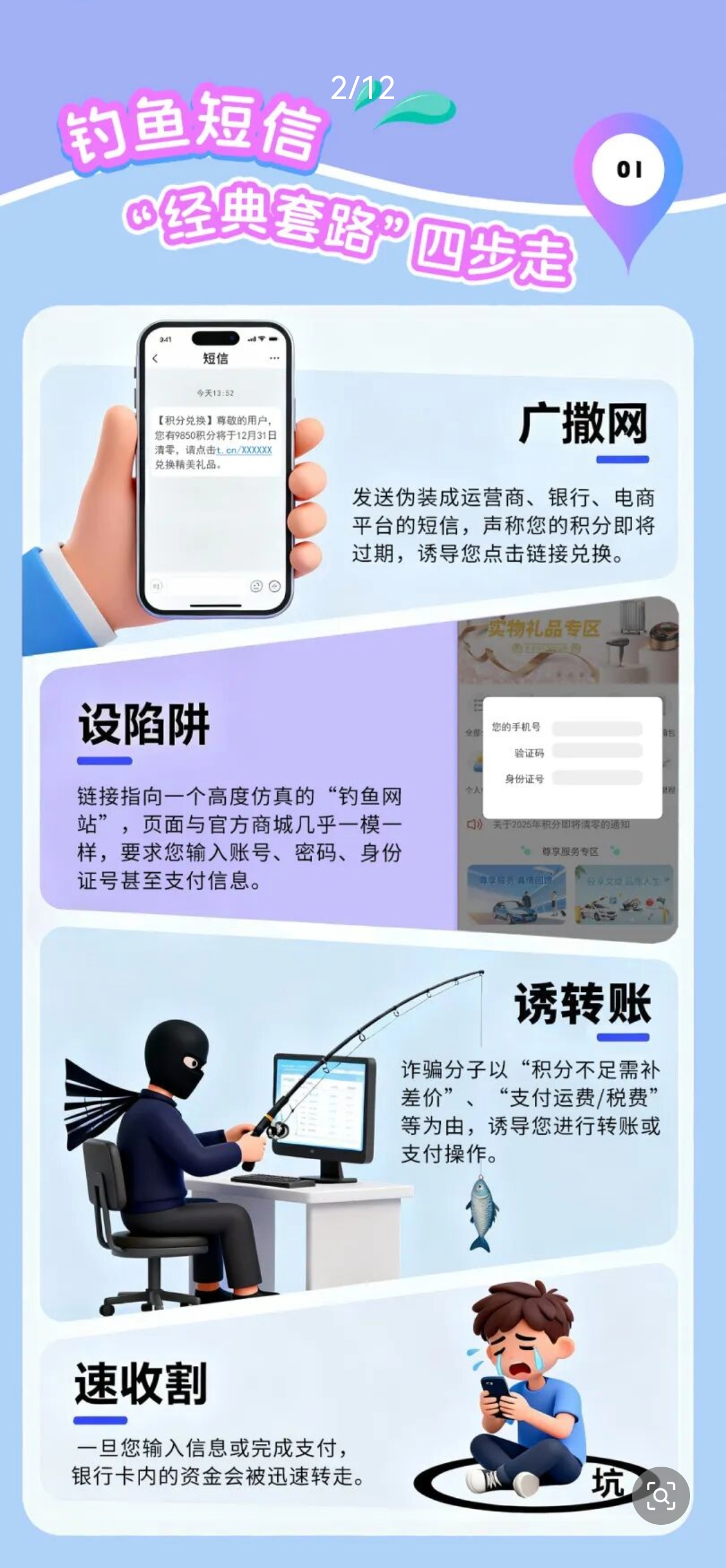 眼下,年关将至,各类诈骗活动进入高发期。其中,“积分清零”类骗局尤为突出。诈骗分子利用群众担心积分作废的心理,通过虚假短信、冒充客服等方式设下圈套,诱导群众泄露个人信息或进行转账,致使财产受损。