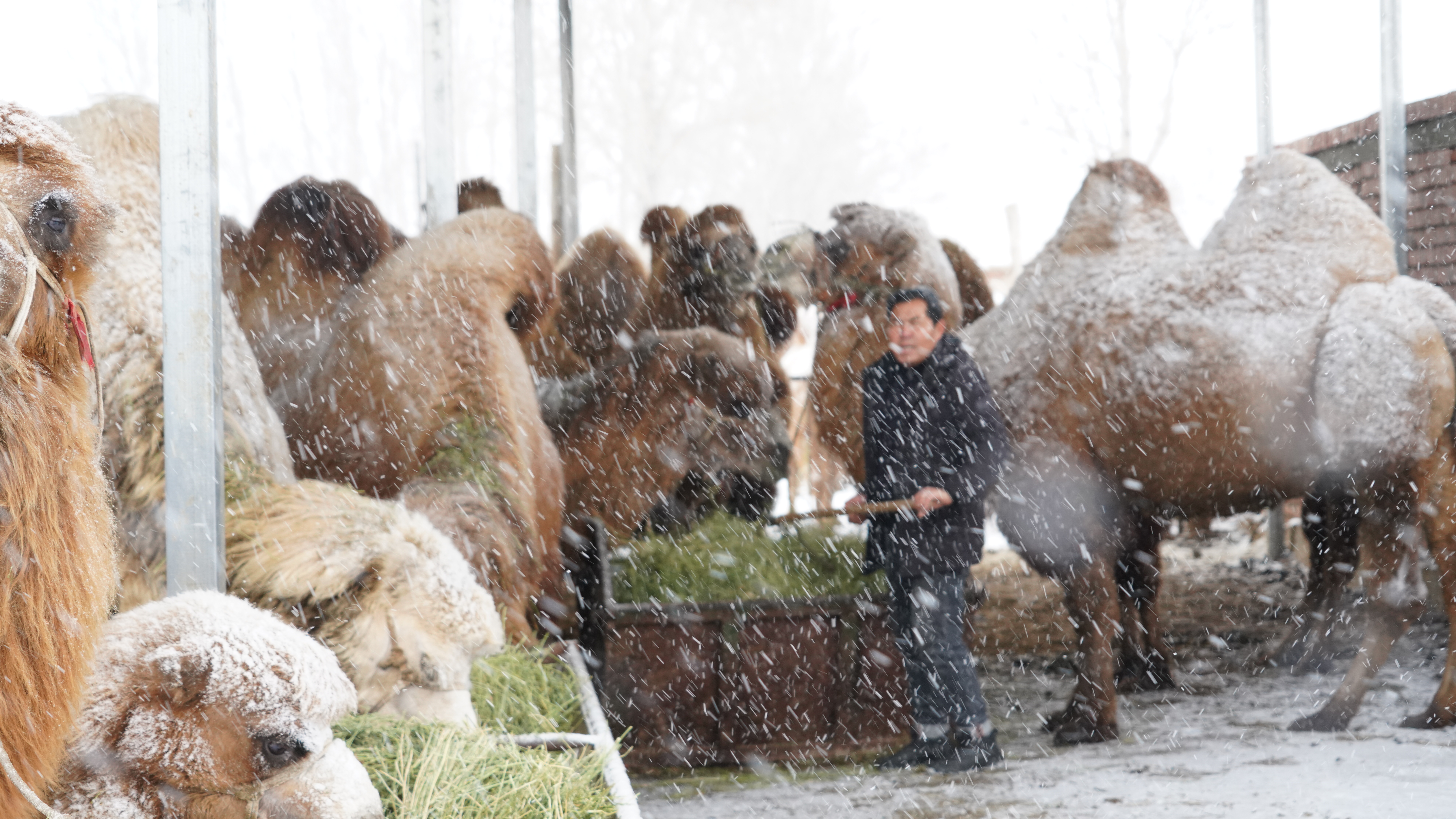 天刚蒙蒙亮,福海县解特阿热勒镇解特阿热勒村的寒气还没散透,牧民阿达力·卡肯和其爱人就已经忙活开了——扫积雪、清驼圈、给奶罐消毒、挤驼奶……每一步都透着股麻利劲。