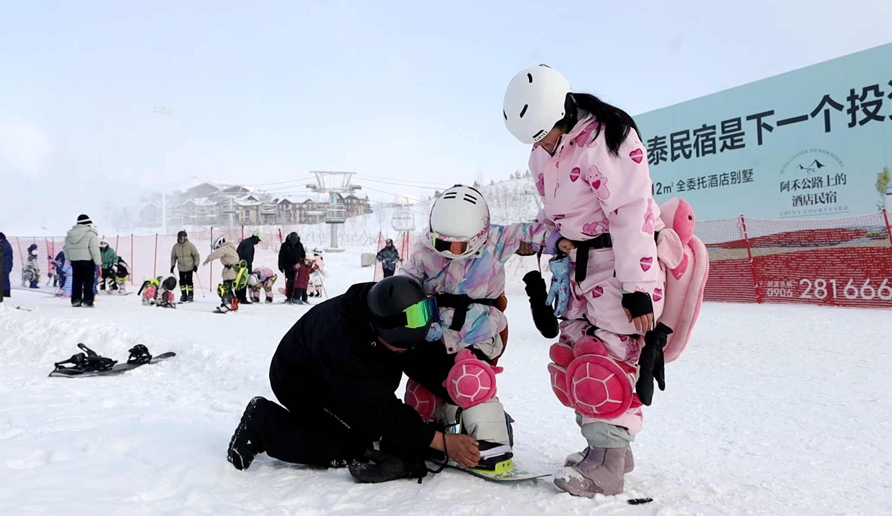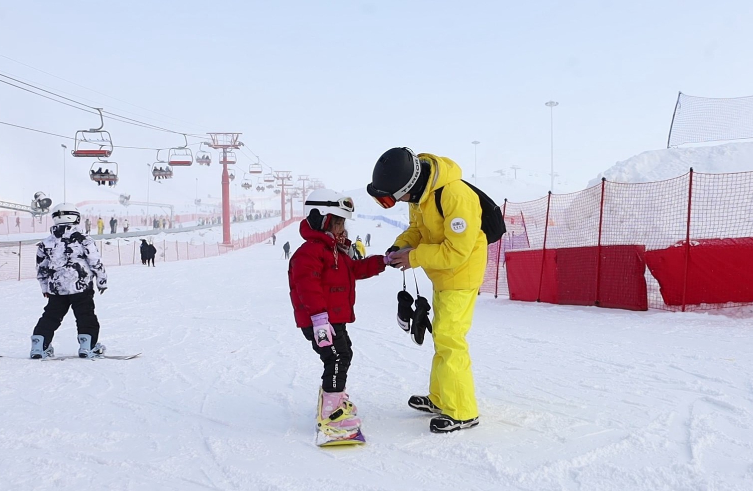寒假假期,家长陪伴孩子滑雪。