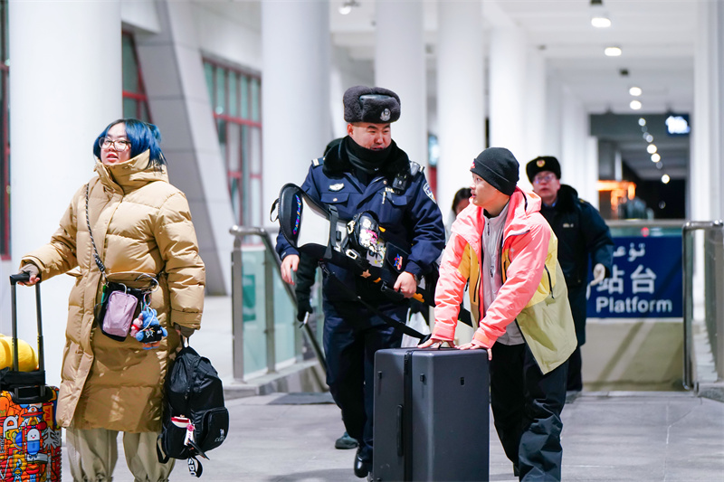 乌鲁木齐铁路公安局奎屯公安处阿勒泰站派出所民警美热依·阿依本说:“春运期间,尤其是在春节等重点时段,我们科学安排勤务,强化站区巡逻防控和安检查危工作。接下来,我们也将扎实做好各项安保工作,全力保障广大旅客出行安全、顺畅。”