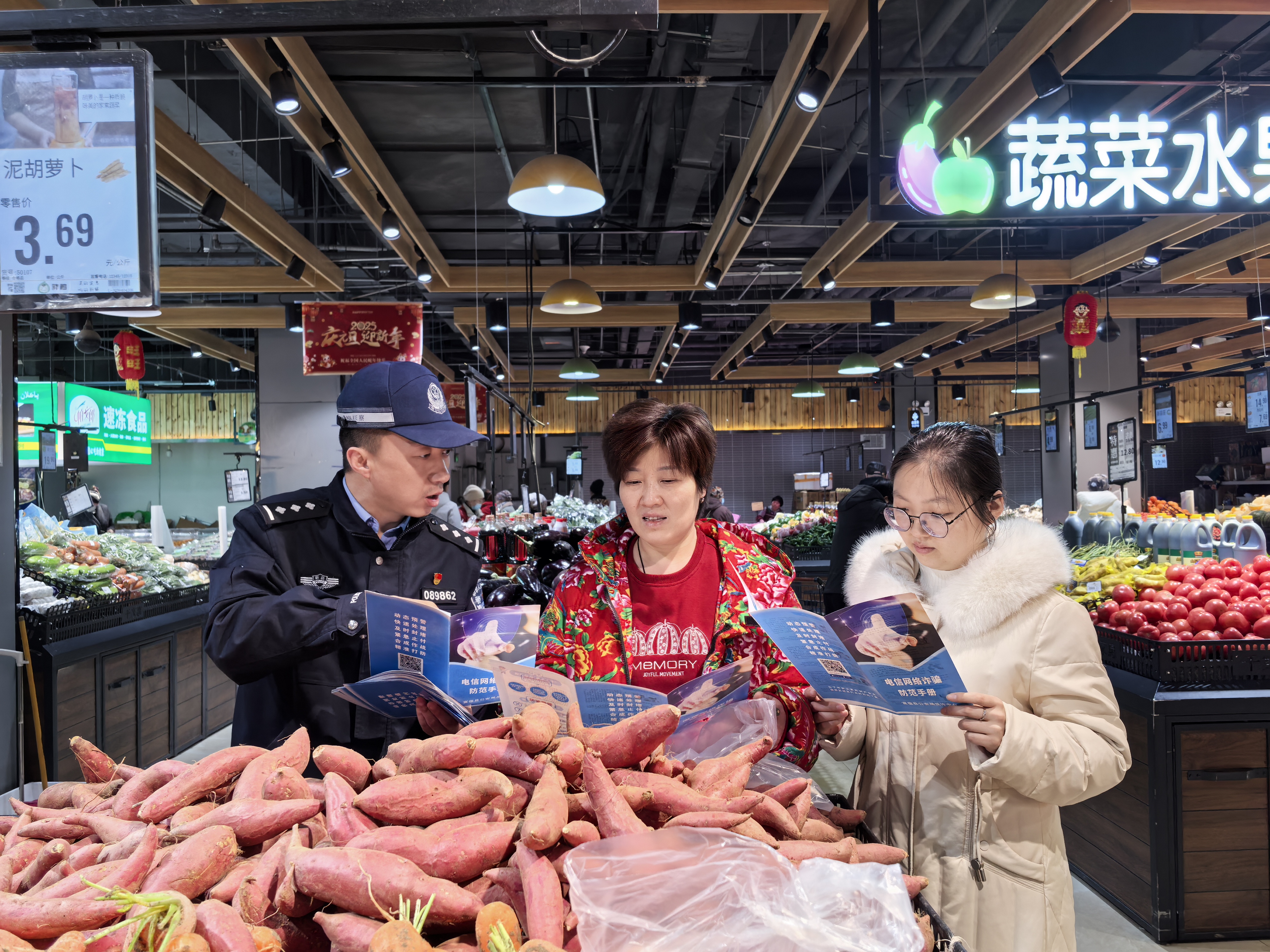 2月18日,富蕴县公安局刑事侦查大队民警走进辖区大型超市,开展 “反诈宣传活动。通讯员 阿依努尔 摄