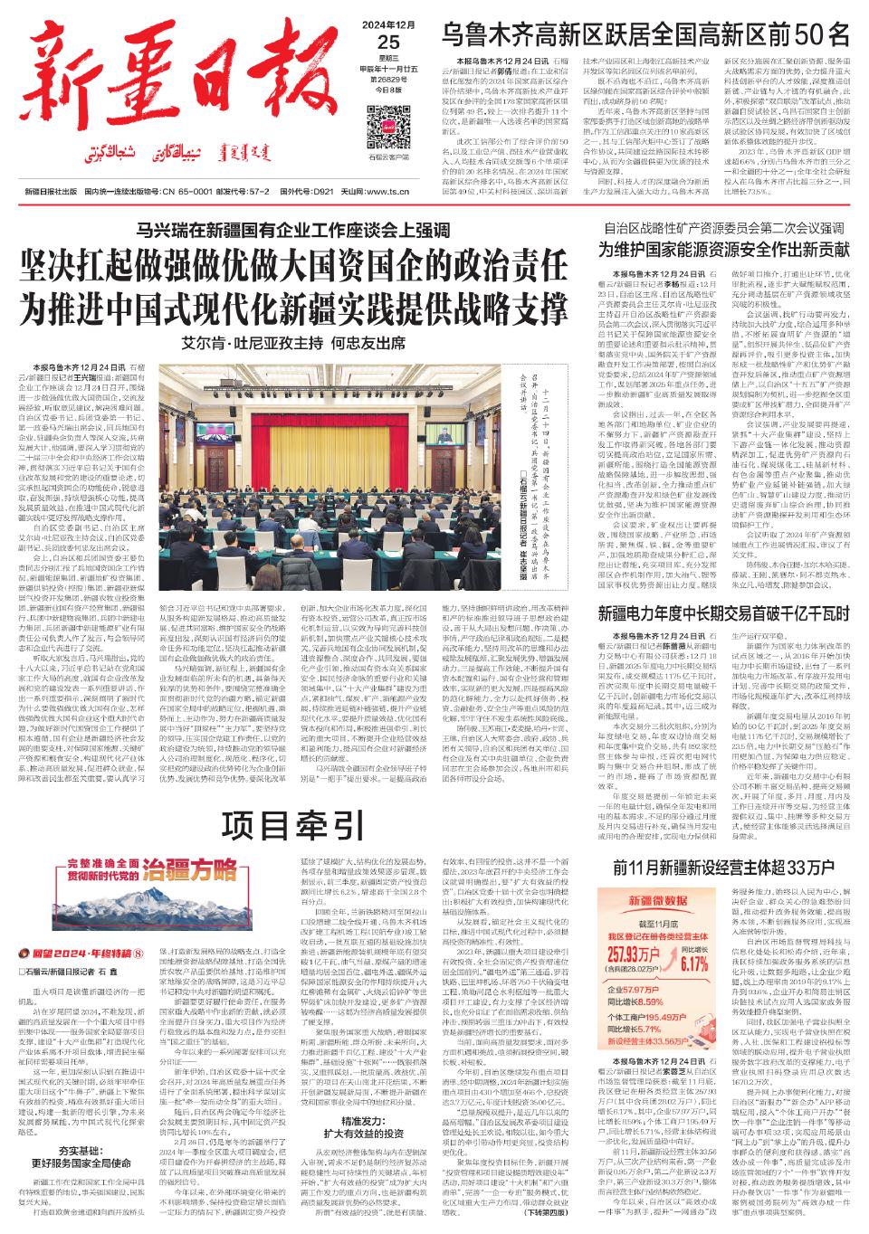 回顾全年,兰新铁路精河至阿拉山口段增建二线全线开通、乌鲁木齐机场改扩建工程机场工程(民航专业)竣工验收启动,一批互联互通的基础设施加快推进;新疆新能源装机规模年底有望突破1亿千瓦,油气当量、原煤产量的增速增量均居全国首位,疆电外送、疆煤外运保障国家能源安全的作用持续提升;大红柳滩稀有金属矿、火烧云铅锌矿等世界级矿床加快开发建设,更多矿产资源被唤醒……这都为经济高质量发展提供了硬支撑。
