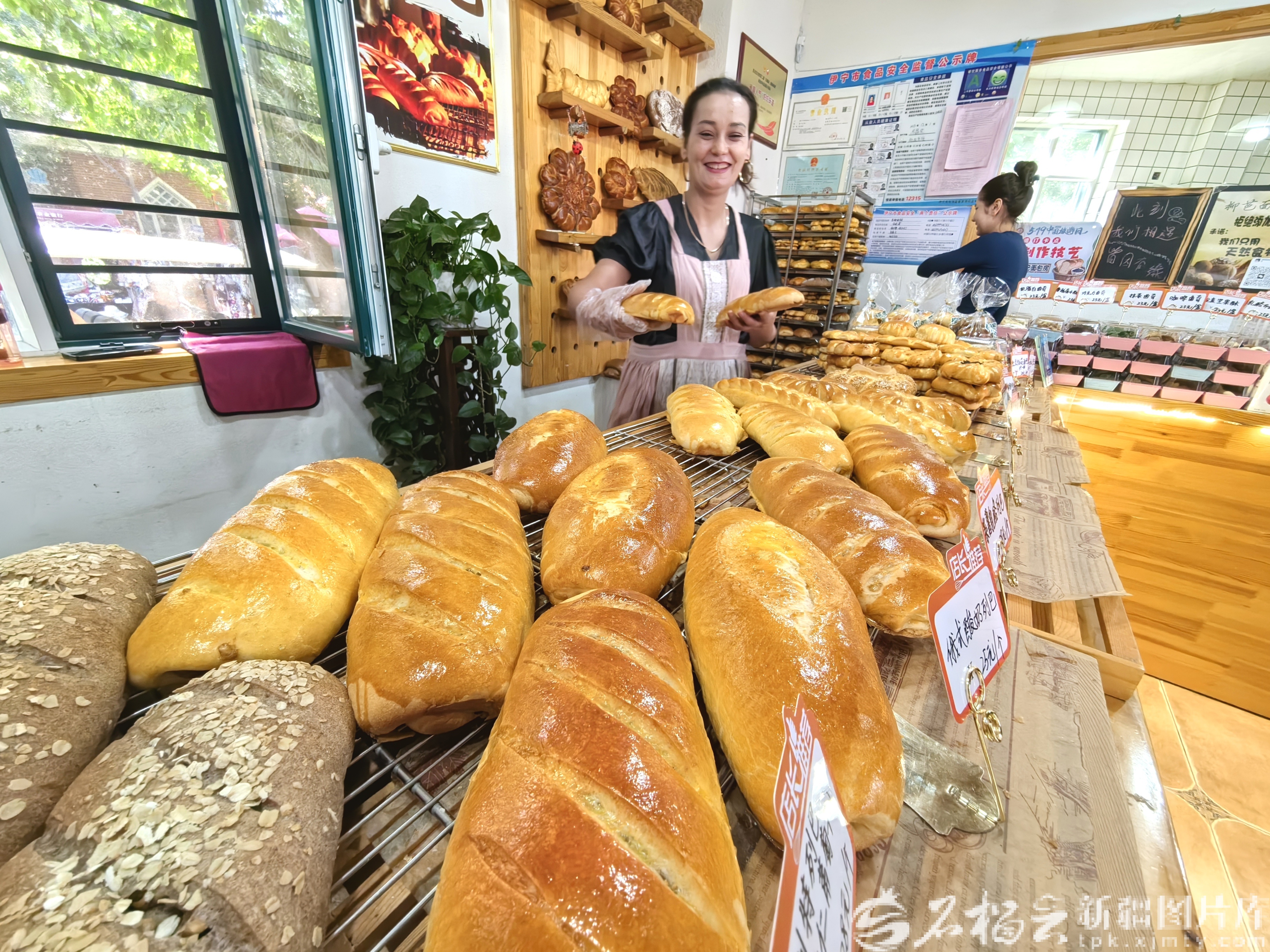 9月8日,在伊宁市六星街一商家正在摆放刚出炉的俄罗斯列巴。