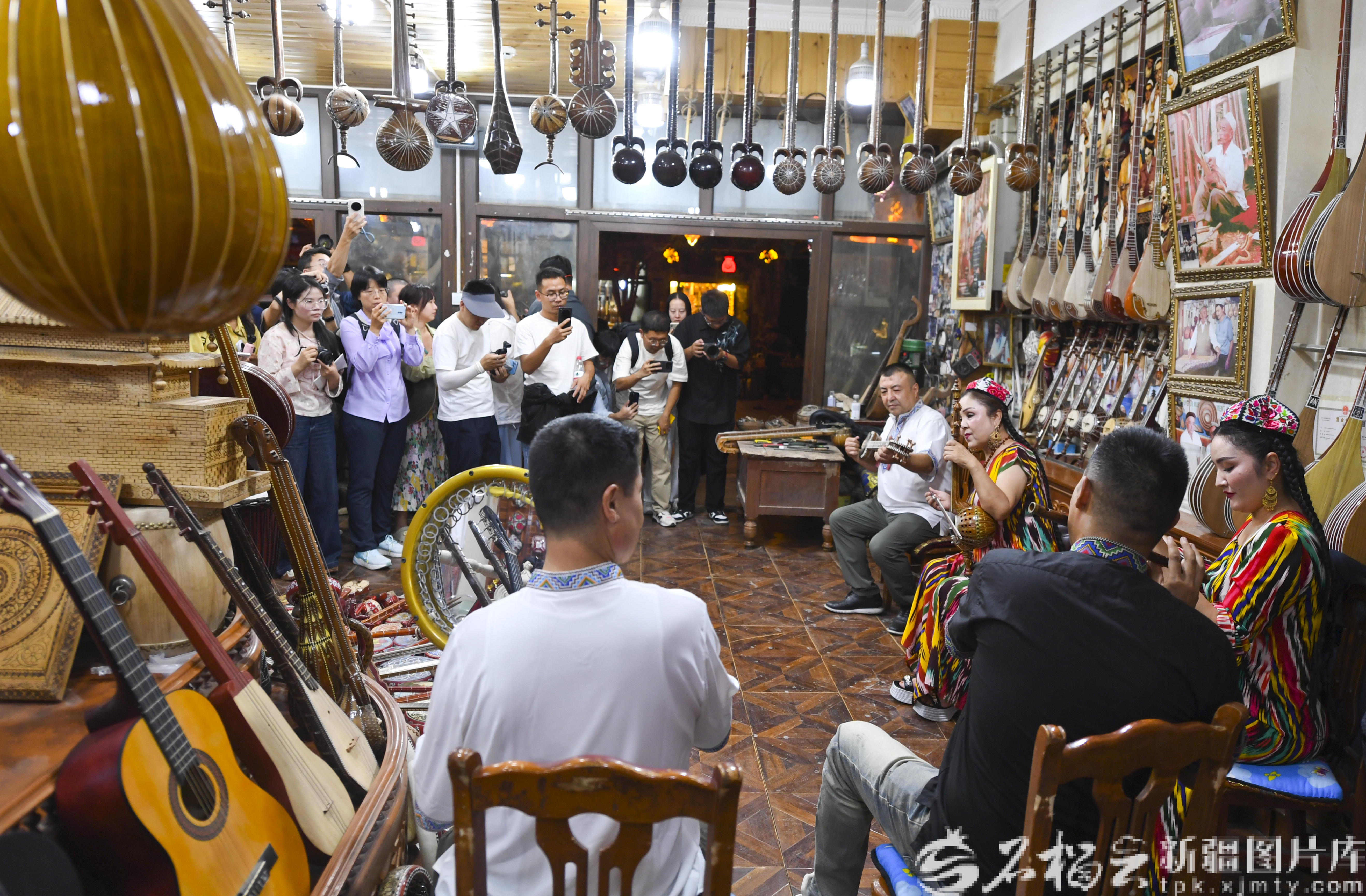 漫步街巷,文化体验无处不在,坎土曼巴扎铁业公社里铁锤叮当,药茶博物馆飘着草本清香,游客品茶听养生故事;“古丽的家”民宿中,麦西热甫歌舞欢快,游客自发加入舞蹈;汗巴扎的烤包子滋滋作响,瓜果香甜,市井烟火气十足。