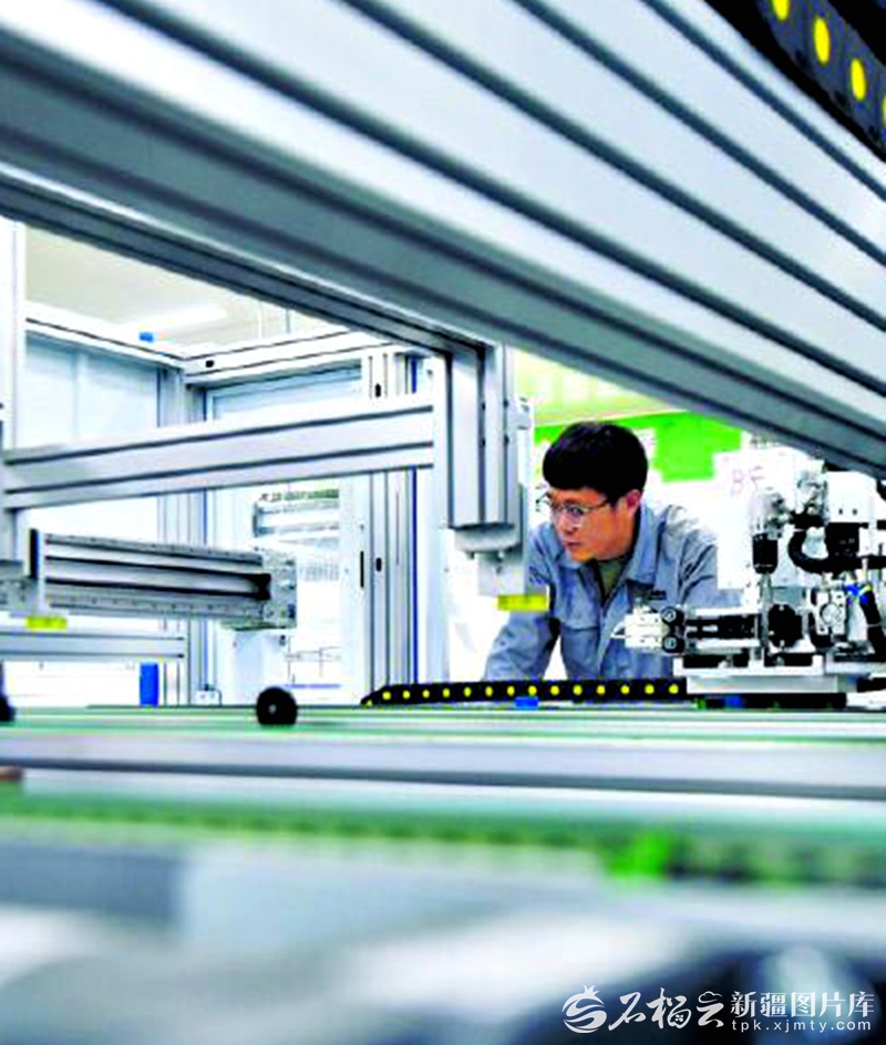 3月5日,工人在焉耆回族自治县河北巴州生态产业园的巴州鸿晟新能科技有限公司光伏项目二期生产车间检查设备。该公司的光伏组件生产二期项目是河北省援疆重点项目。天山网-新疆日报记者王立华摄