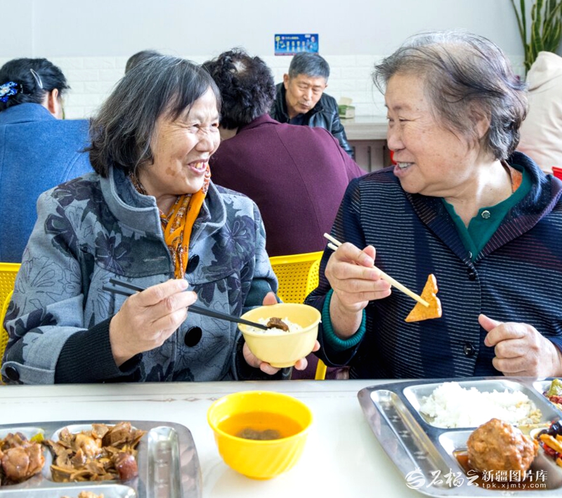乌鲁木齐经济技术开发区(头屯河区)中亚南路街道中亚南路社区居民在社区食堂用餐(2024年4月2日摄)。该社区食堂让老人享受到了暖心的餐饮服务,老有所养的幸福成色更足了。孙振嵩摄
