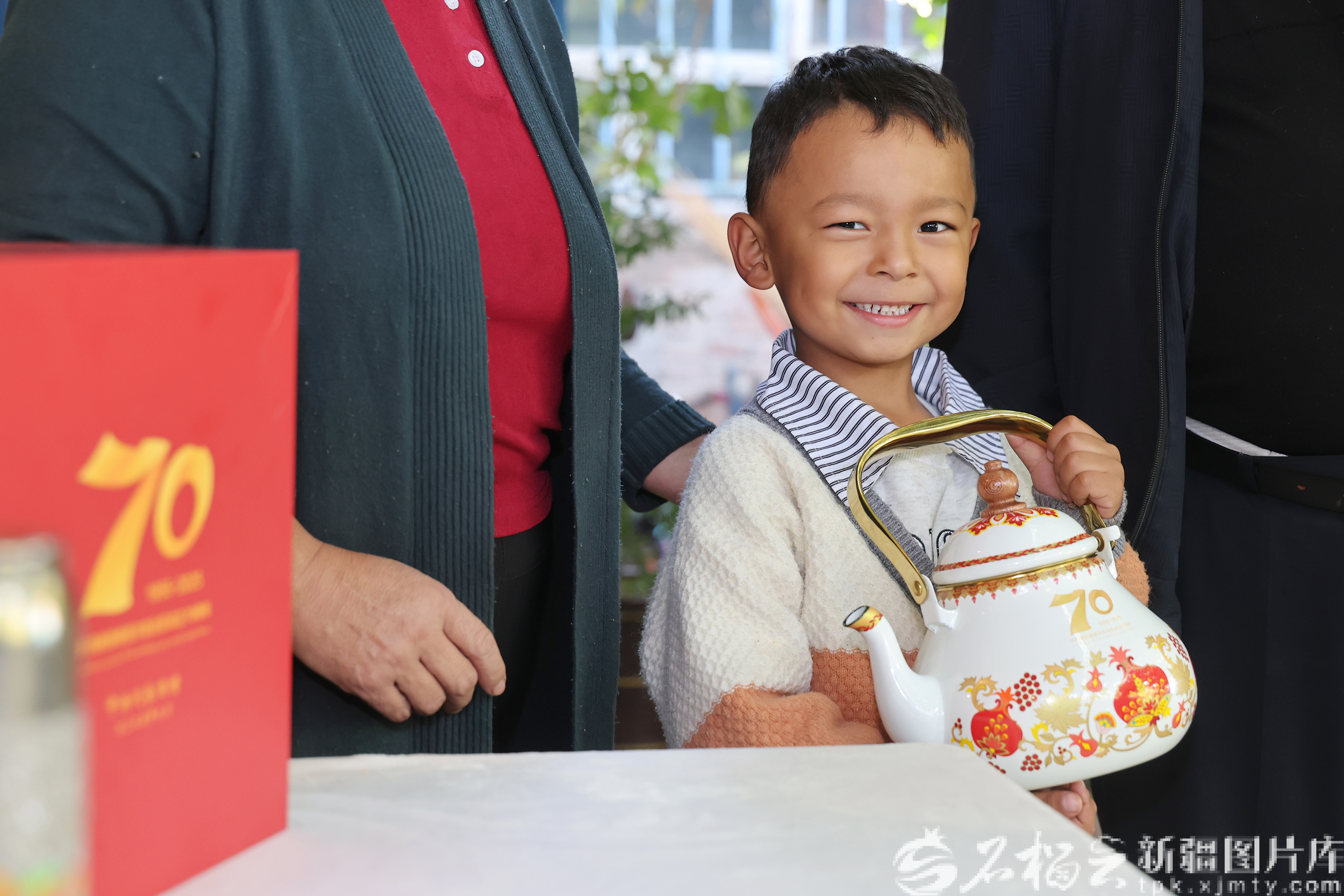 吾买尔说,在自治区成立70周年的喜庆日子里,中央代表团不远万里看望基层群众,党中央的关怀,我们铭记在心。说着,他叫来老伴和孙子,在纪念品旁留下一张合影。画面里,小孙子抱着茶壶,笑得格外灿烂。