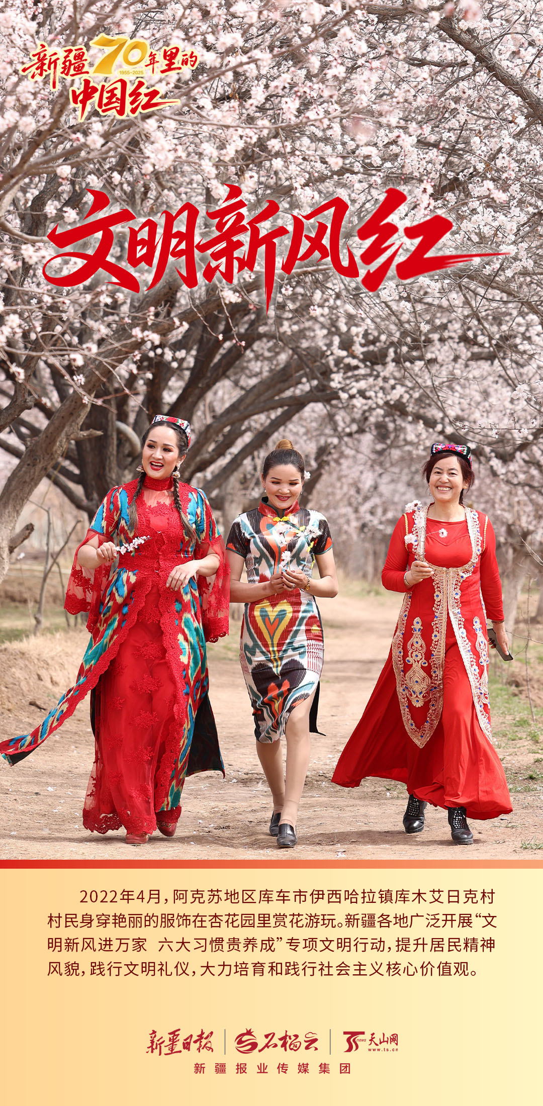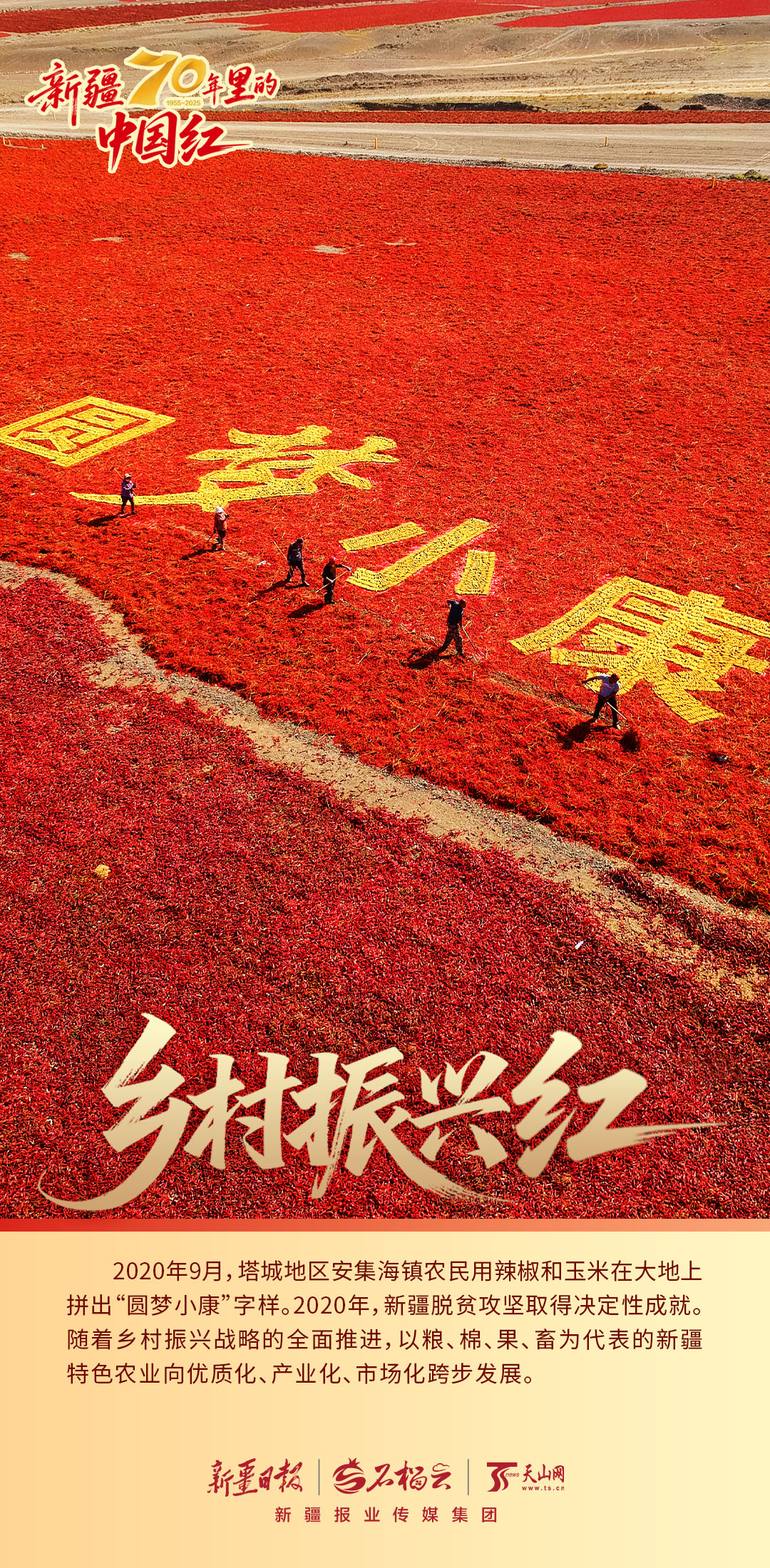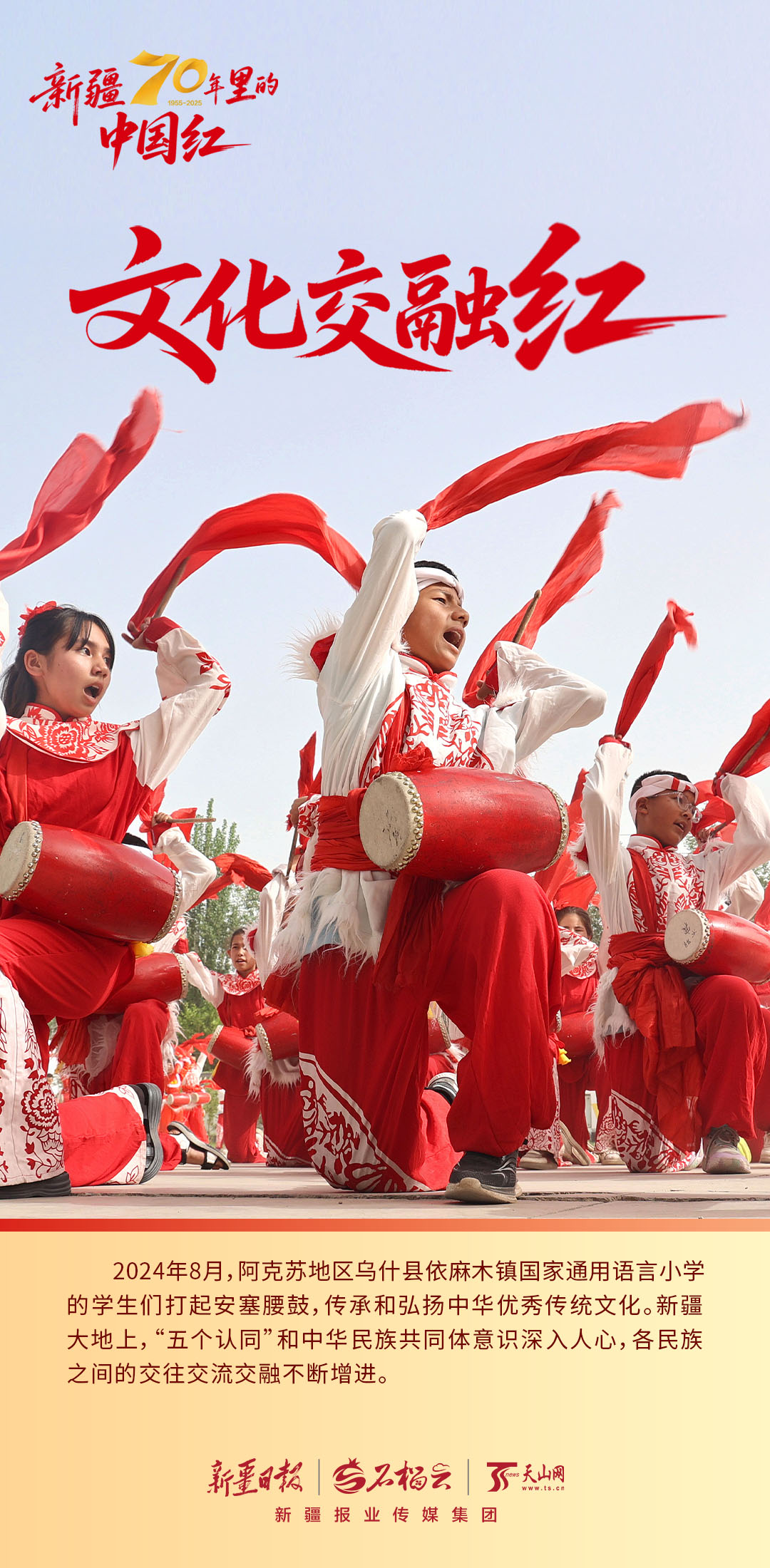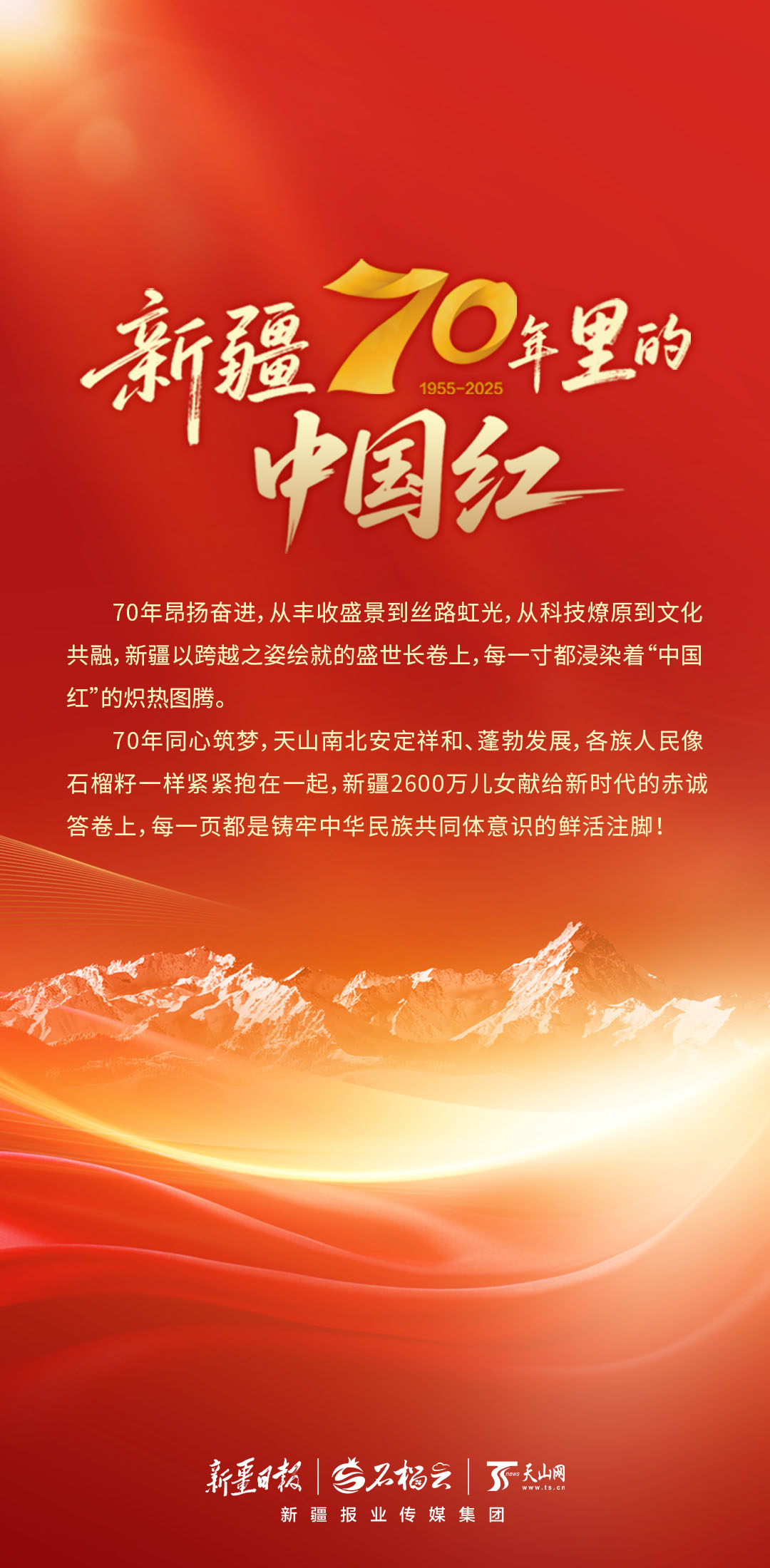 70年昂扬奋进,从丰收盛景到丝路虹光,从科技燎原到文化共融,新疆以跨越之姿绘就的盛世长卷上,每一寸都浸染着“中国红”的炽热图腾。