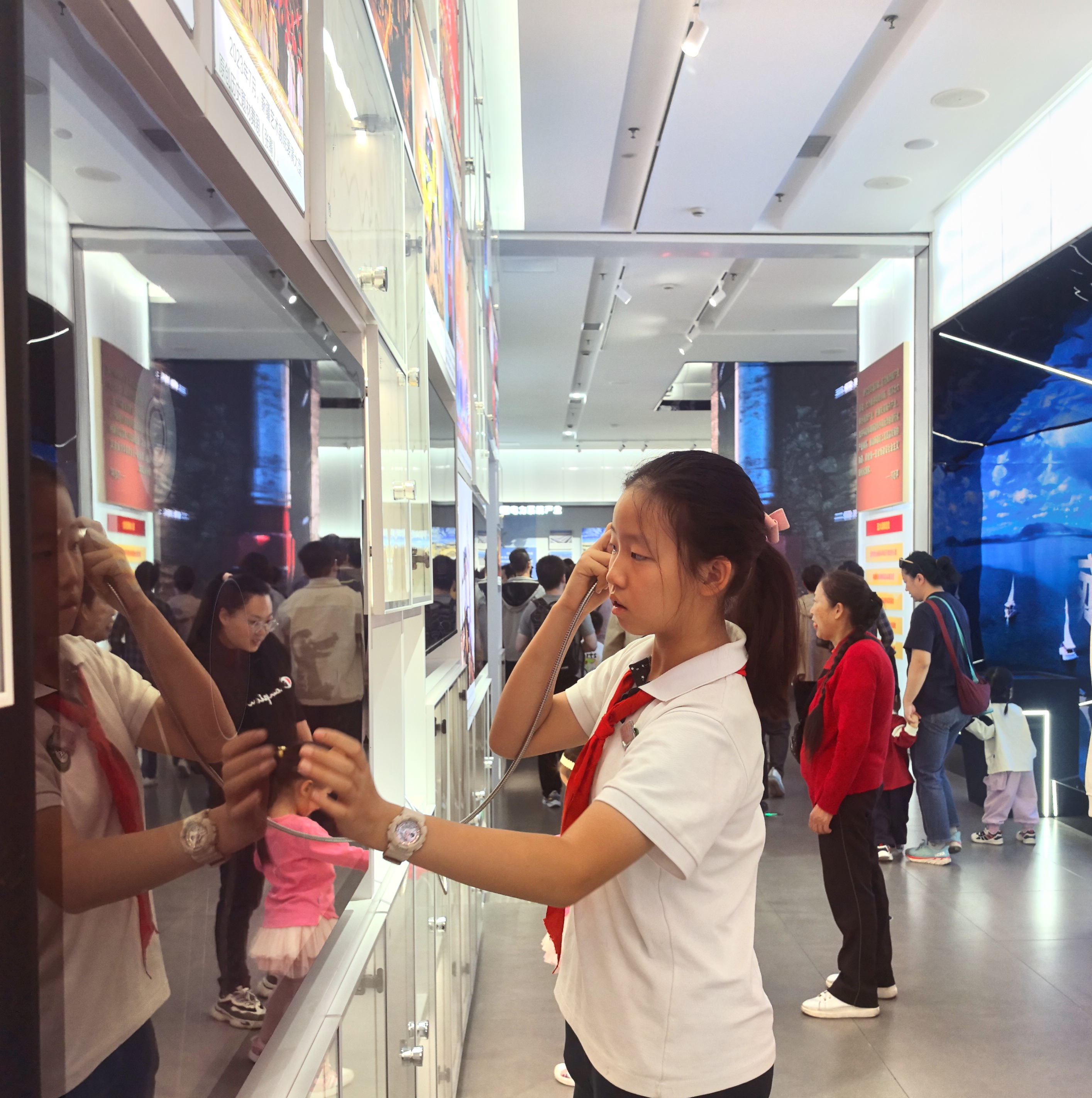 展厅里一段短视频让不少观众驻足:今年暑假,和田小姑娘帕提曼罕·排日海提第一次来到祖国的心脏北京天安门。她踮起脚尖,目光注视冉冉升起的五星红旗。那一刻泪水淌过脸颊:“五星红旗在蓝天中是一抹鲜艳的红,也是在我心中永远抹不去的红。”