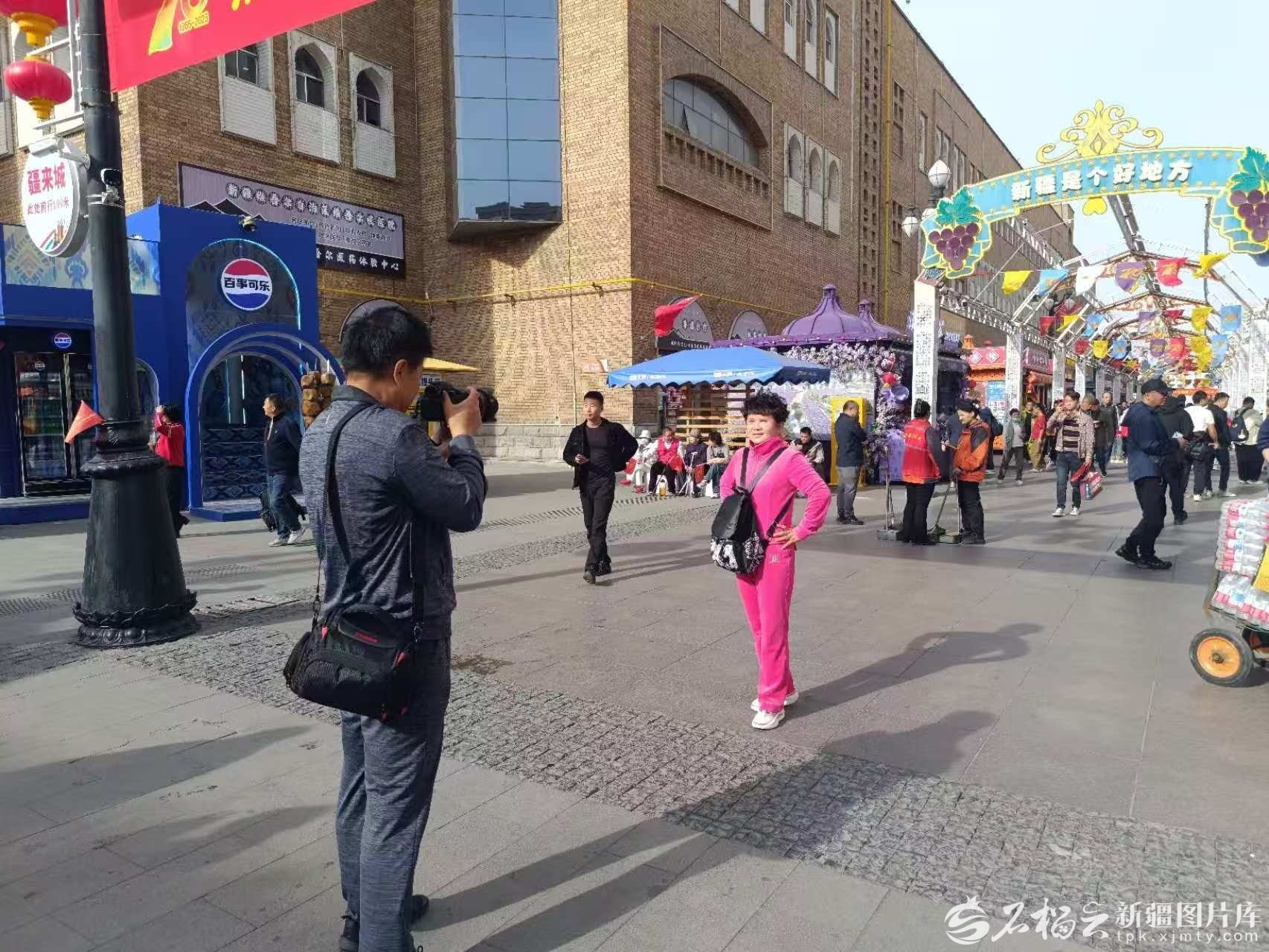 山西游客周泽夫妇来新疆自驾旅游已有近20天了,一走进大巴扎,立即进入“角色”,妻子兴高采烈地挑选有新疆特色的打卡点,周泽就是专职摄影师。“新疆实在太美了,都舍不得离开,这个国庆节特别有意义。”在新疆旅游期间,他们被新疆的发展变化深深震撼,“我们有幸感受新疆的发展脉动,特别有意义。”周泽说。