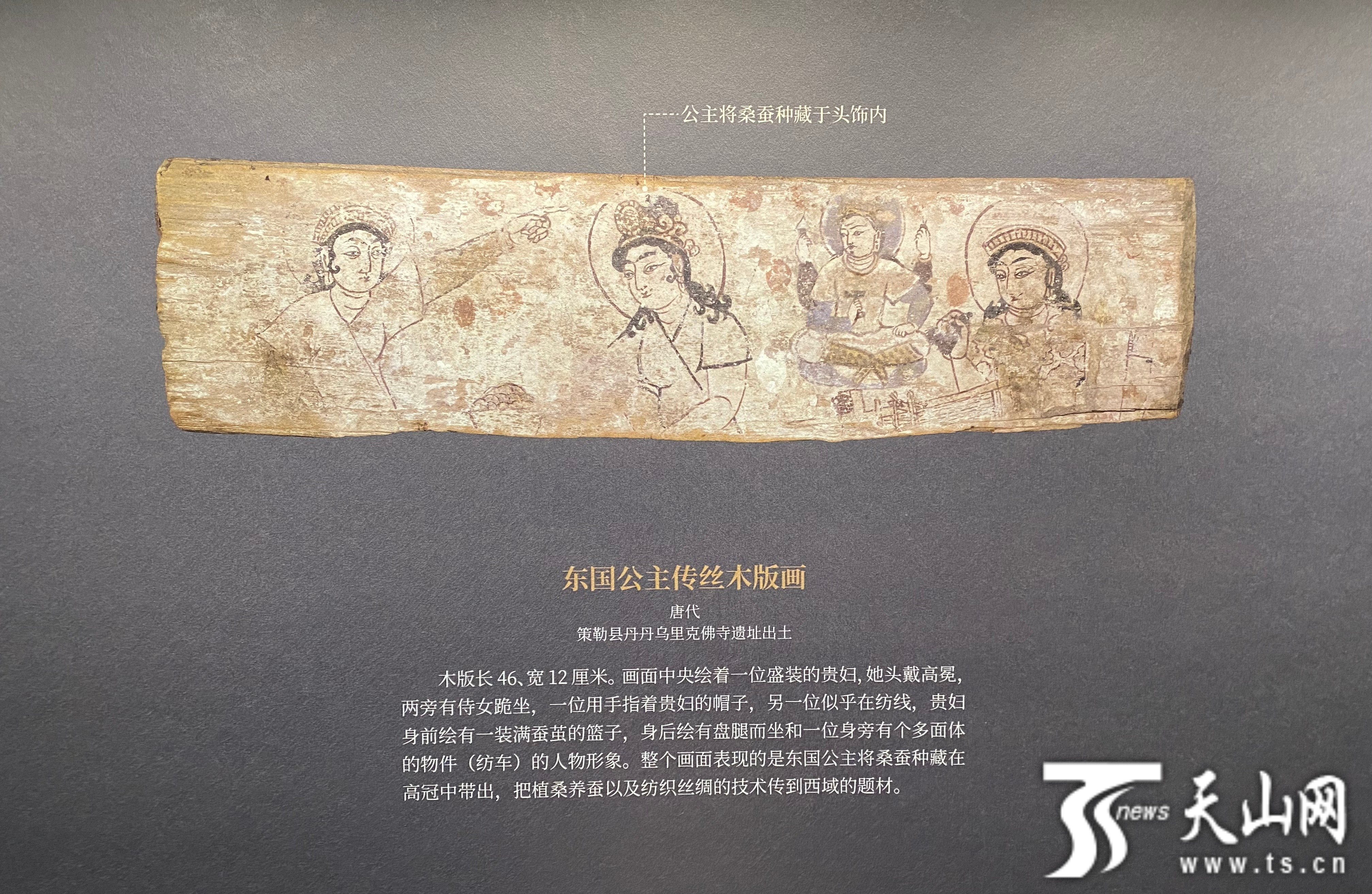 陈列于新疆博物馆历史文物展厅中的东国公主传丝木版画。天山网-新疆日报记者赵梅摄