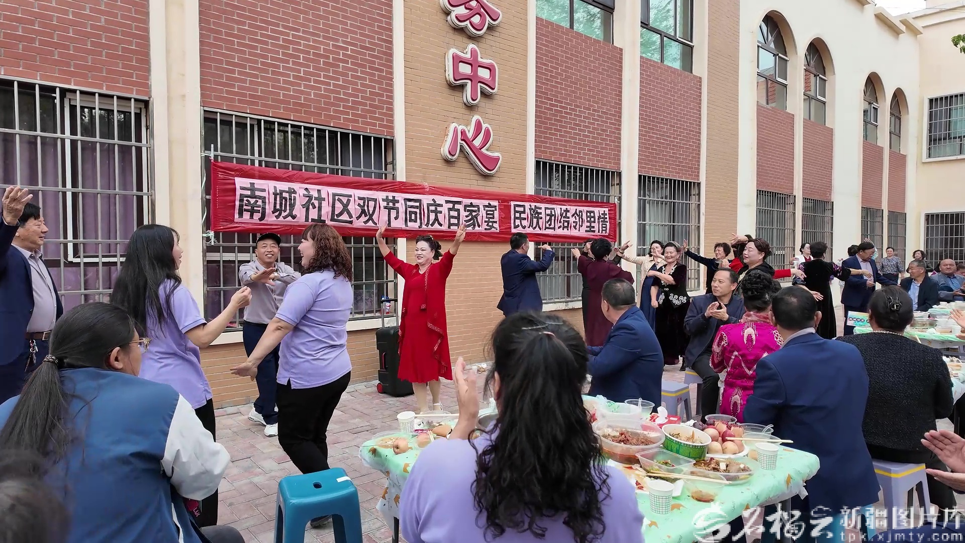 中秋遇国庆,家国共团圆。9月30日上午,玛纳斯县玛纳斯镇南城社区的民族团结长廊里,飘荡着饭菜香和欢笑声——十张餐桌整齐排开,大盘鸡的浓郁、手抓肉的醇厚、馓子的酥脆交织成节日的味道。当天,社区居民以“双节同庆百家宴 民族团结邻里情”为主题,举办了一场邻里长桌宴,社区各族居民围坐在一起,在美食与欢笑中传递节日祝福,也让团圆的滋味格外绵长。